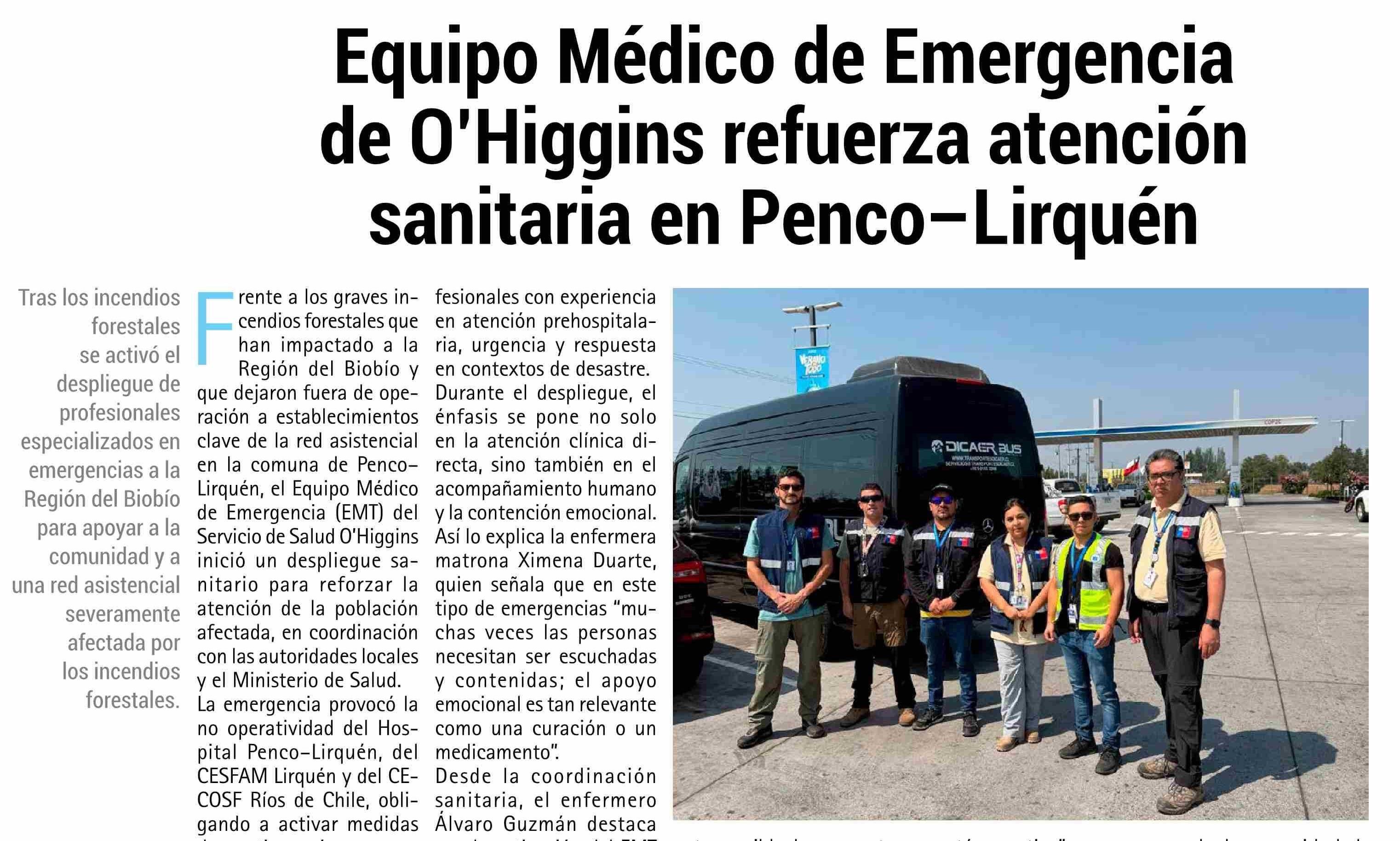 Título: Equipo Médico de Emergencia de O'Higgins refuerza atención sanitaria en Penco-Lirquen