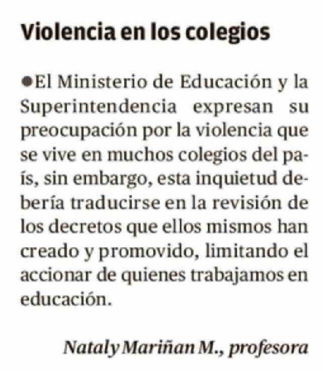 Título: Cartas: Violencia en los colegios