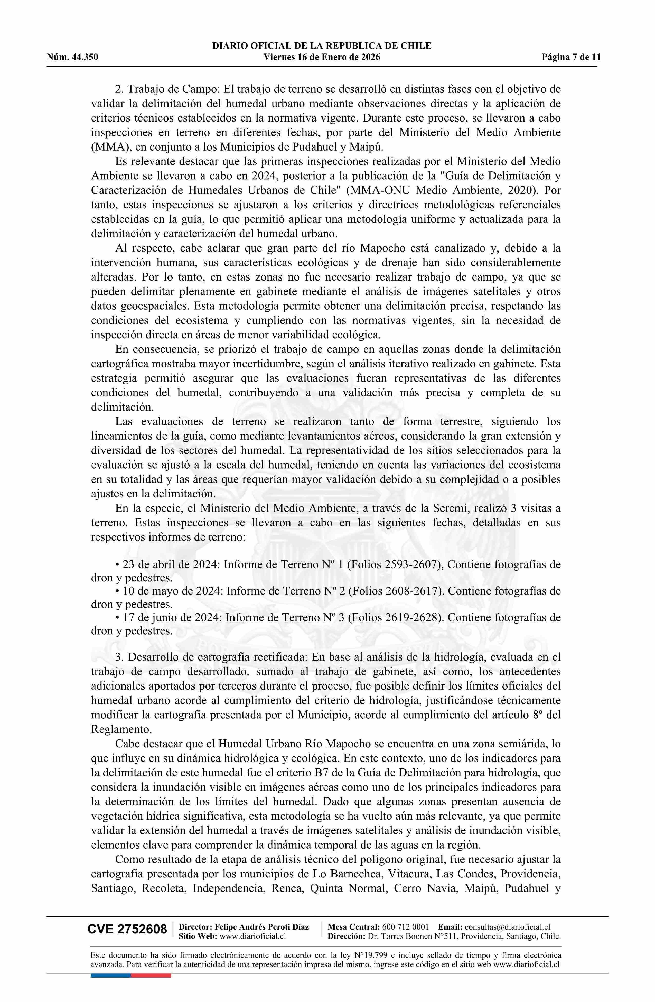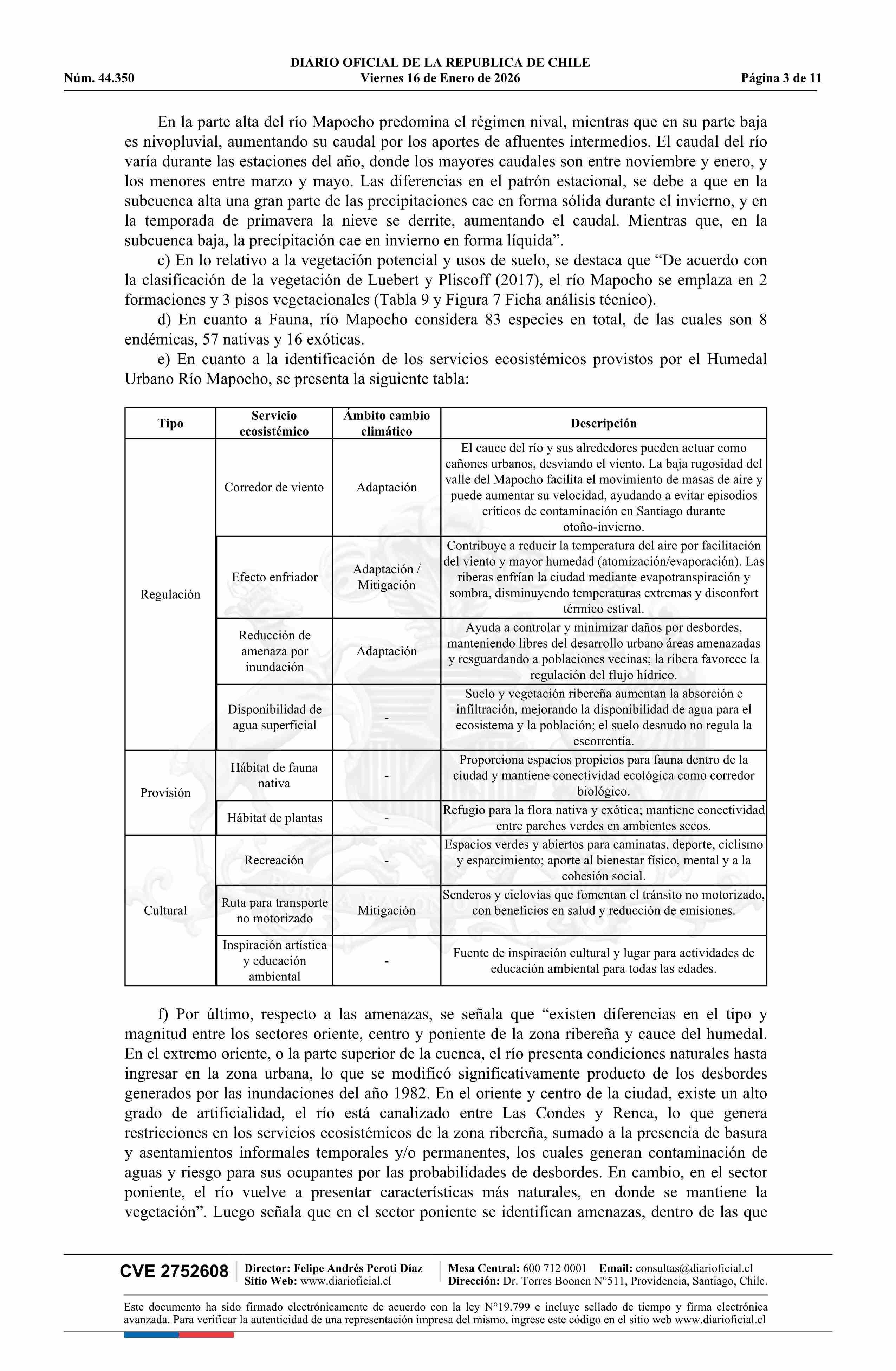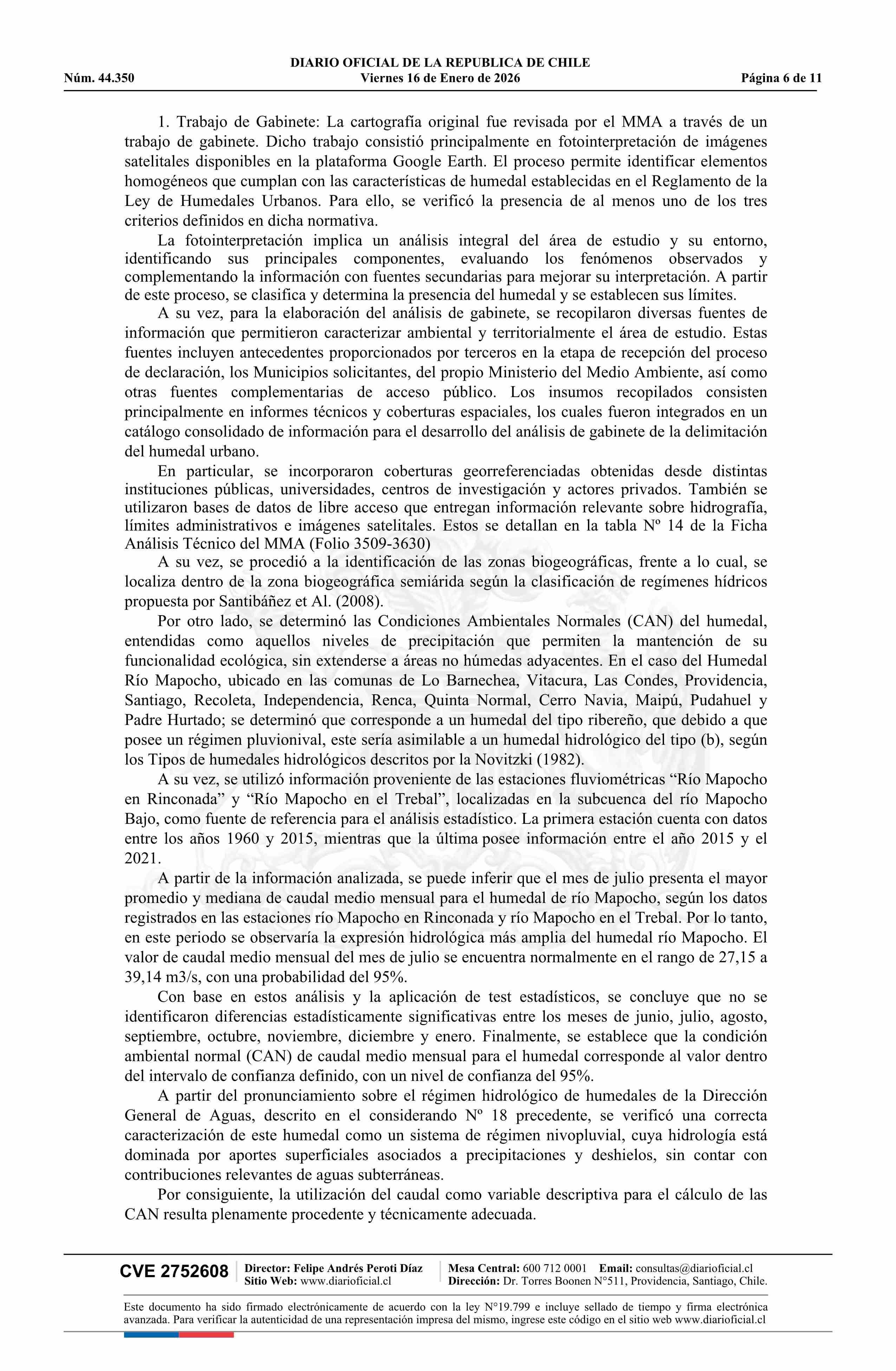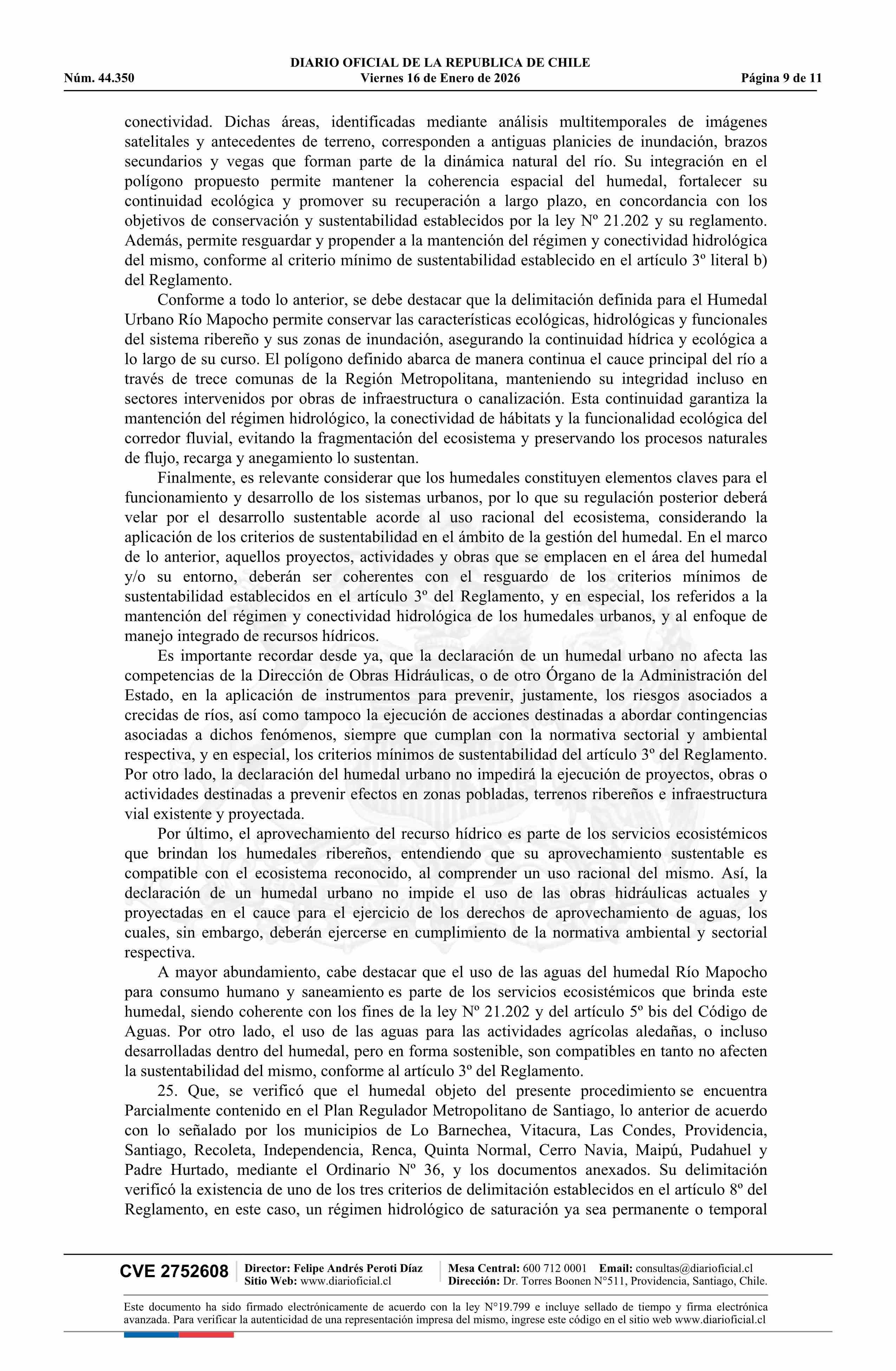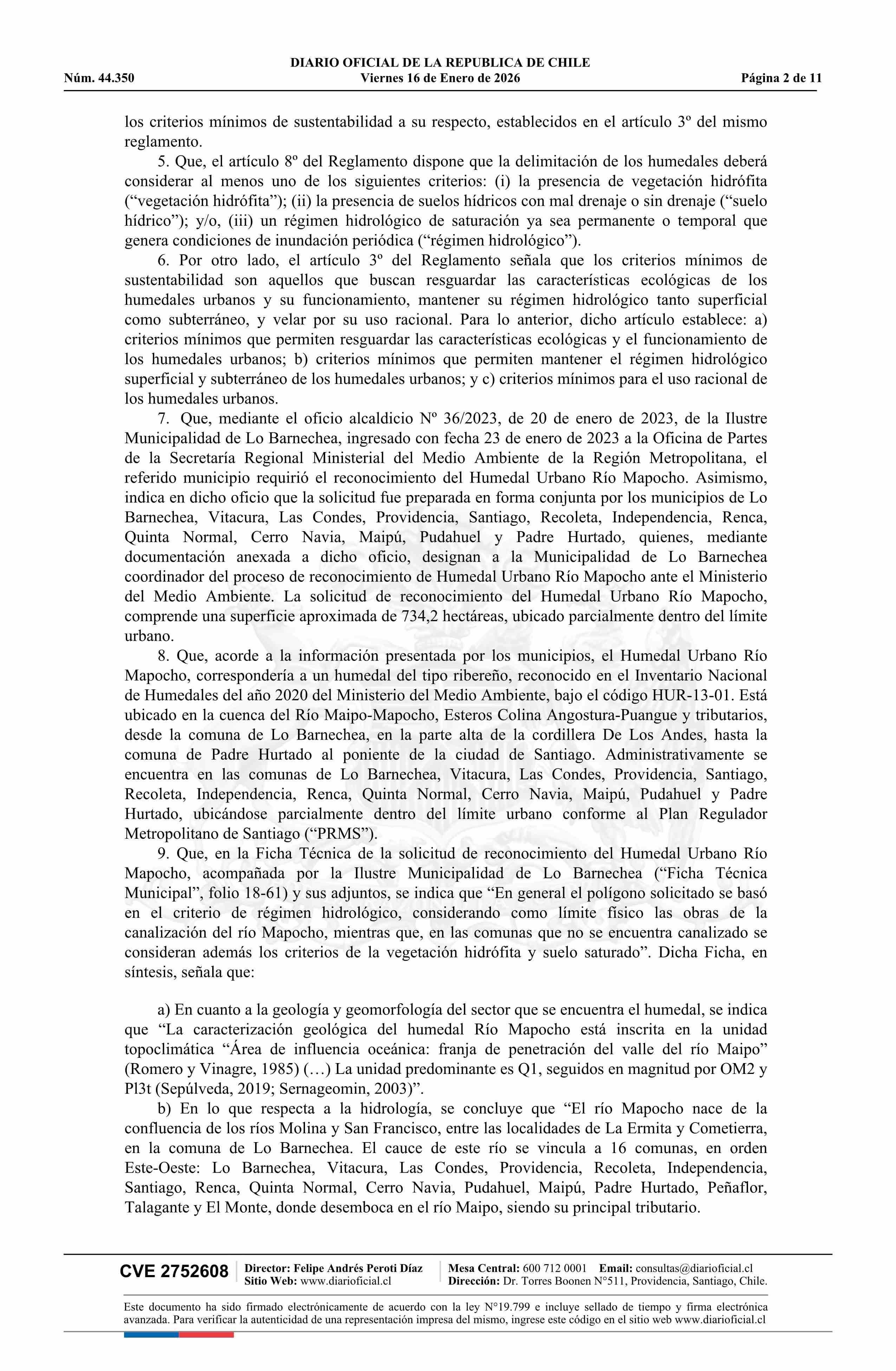 Resolución exenta número 9.638, de 2025.- Reconoce, por solicitud municipal, Humedal Urbano Río Mapocho 16-01-2026 Diario Oficial Edición Electrónica |