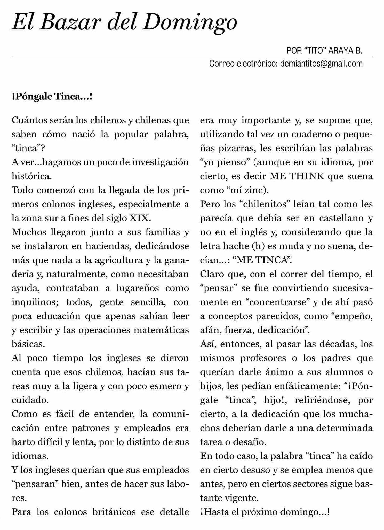 Columnas de Opinión: El Bazar del Domingo 25-01-2026 La Prensa de Curicó |