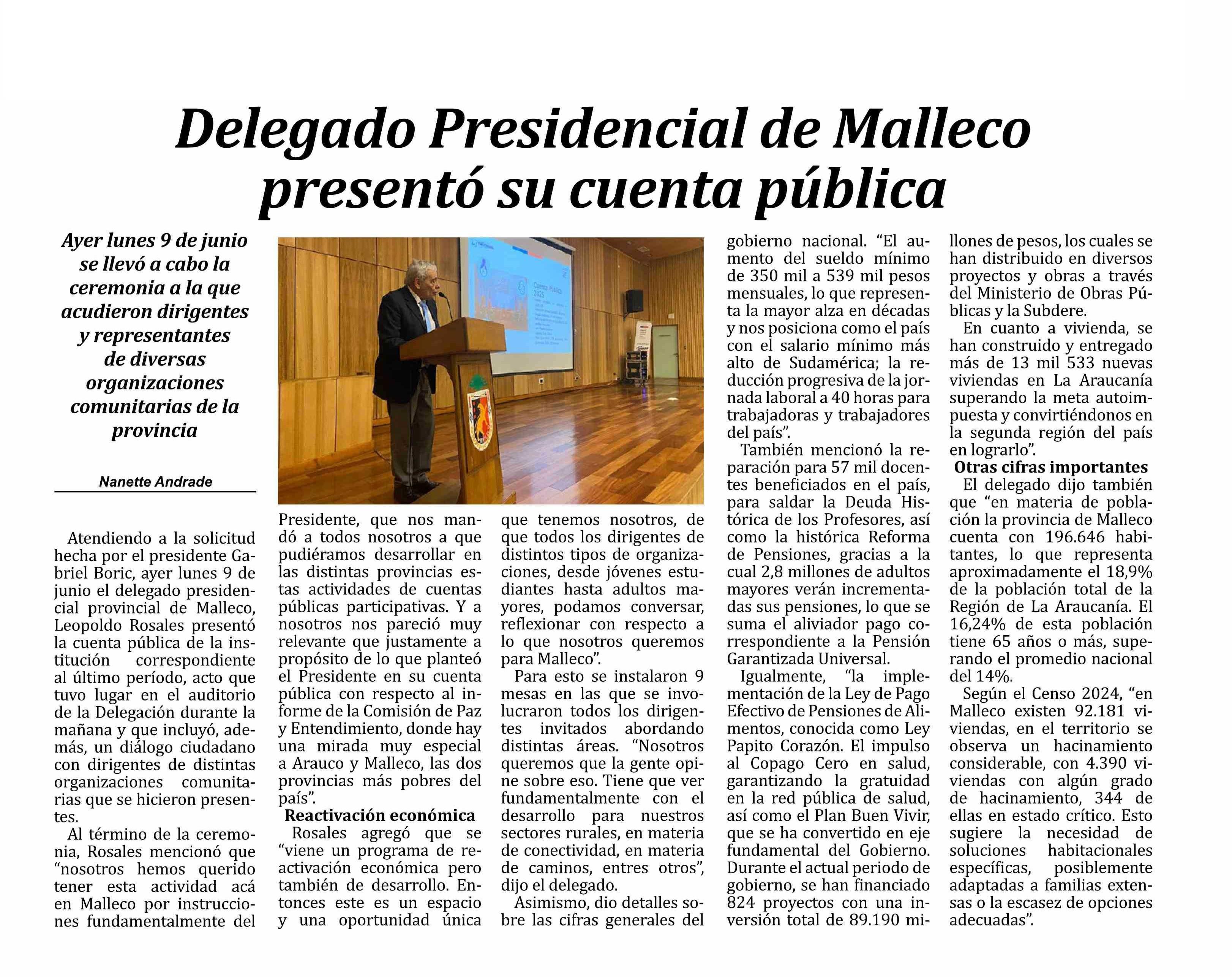 Título: Delegado Presidencial de Malleco presentó su cuenta pública