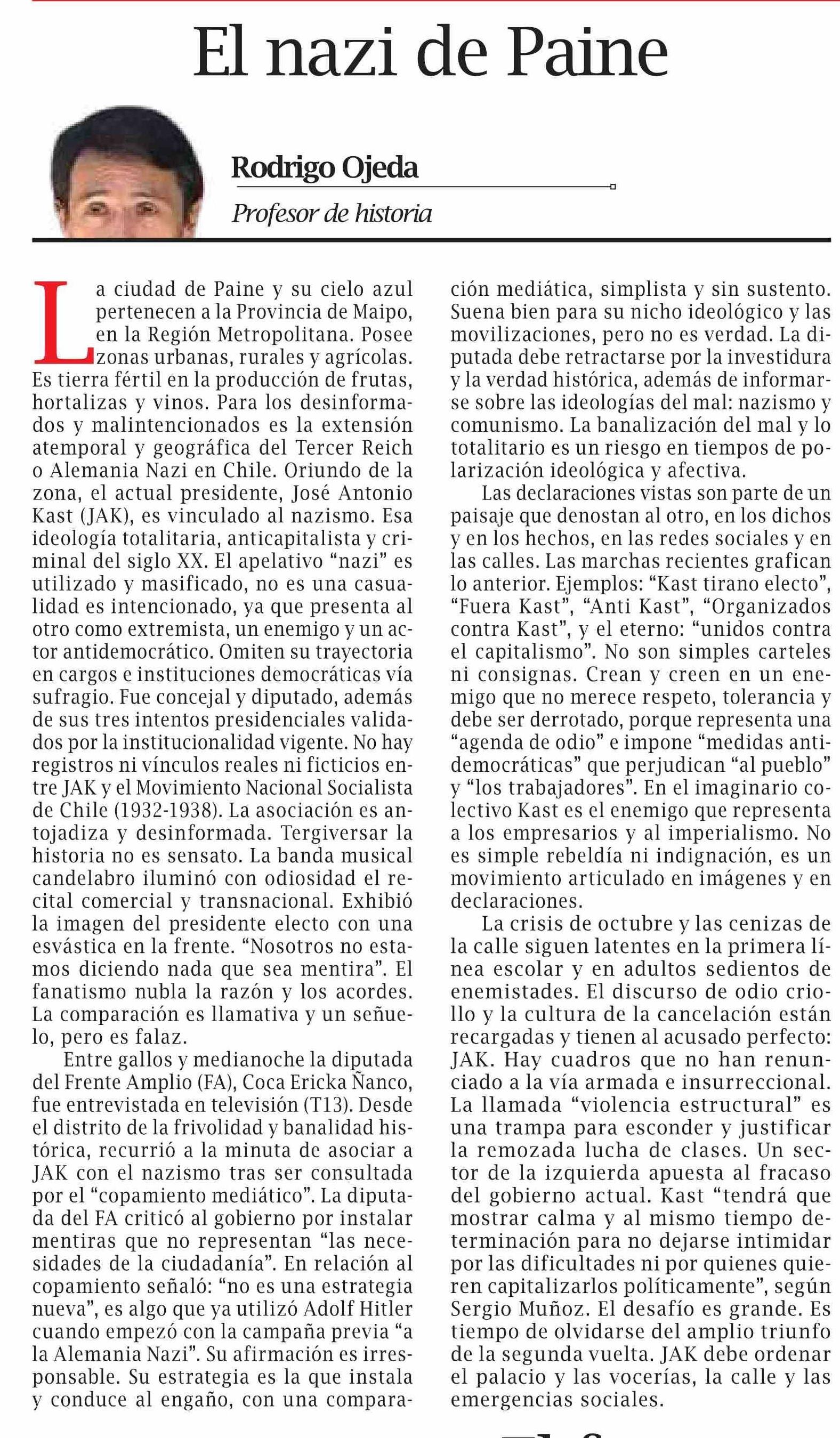 Título: COLUMNAS DE OPINIÓN: El nazi de Paine