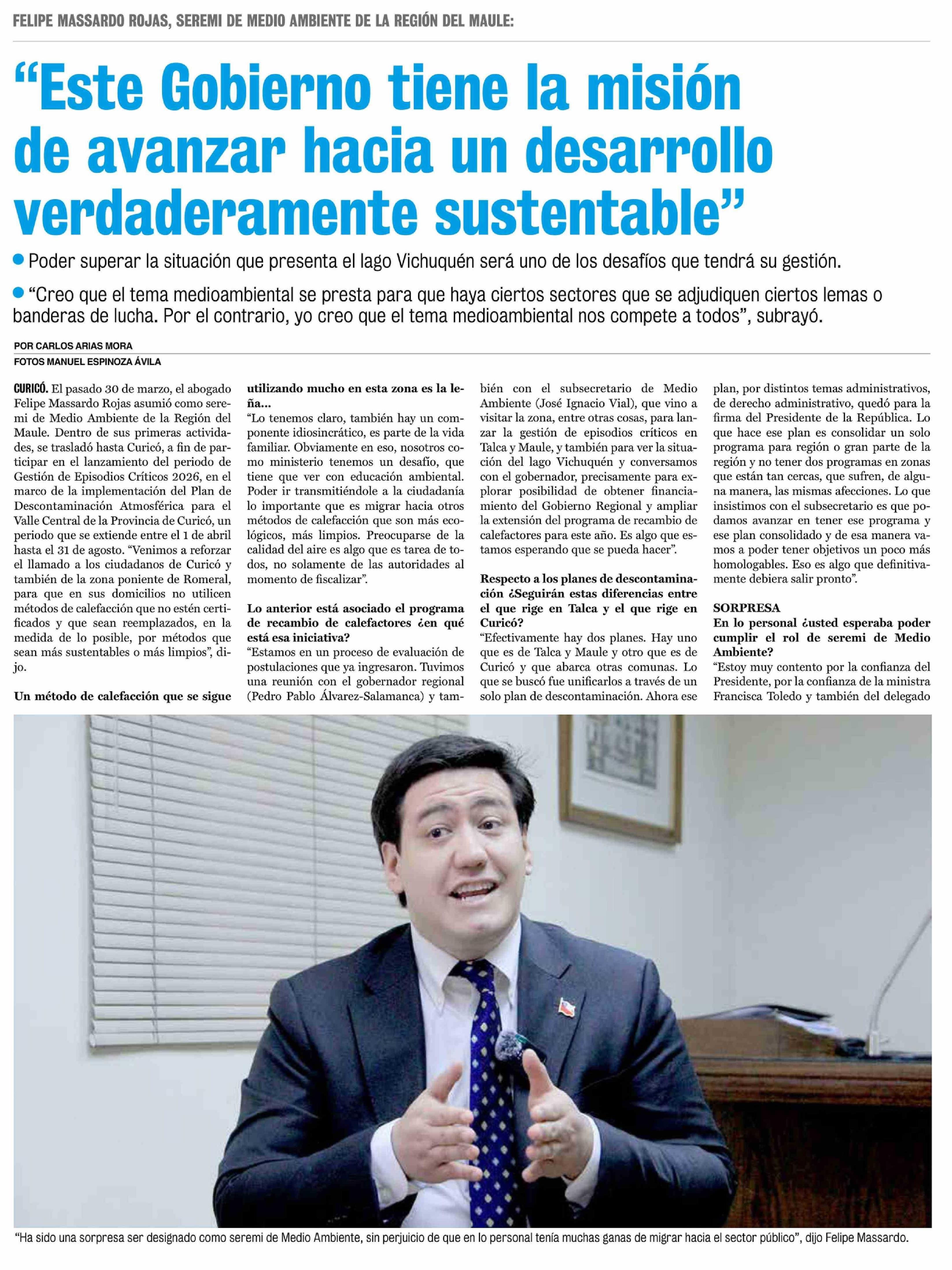 "Este Gobierno tiene la misión de avanzar hacia un desarrollo verdaderamente sustentable" 06-04-2026 La Prensa de Curicó |