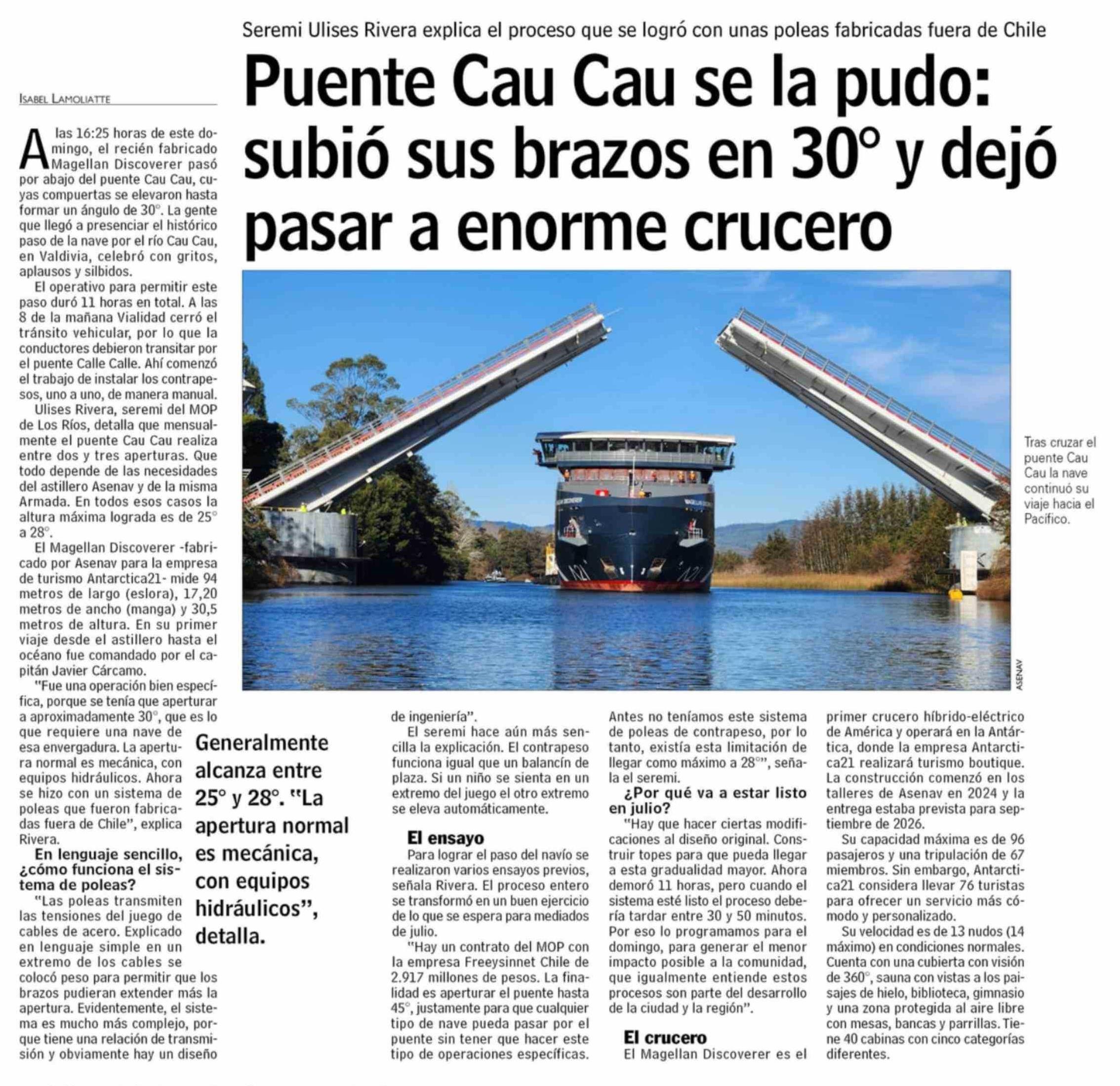 | Título: | Puente Cau Cau se la pudo: subió sus brazos en 30° y dejó pasar a enorme crucero |