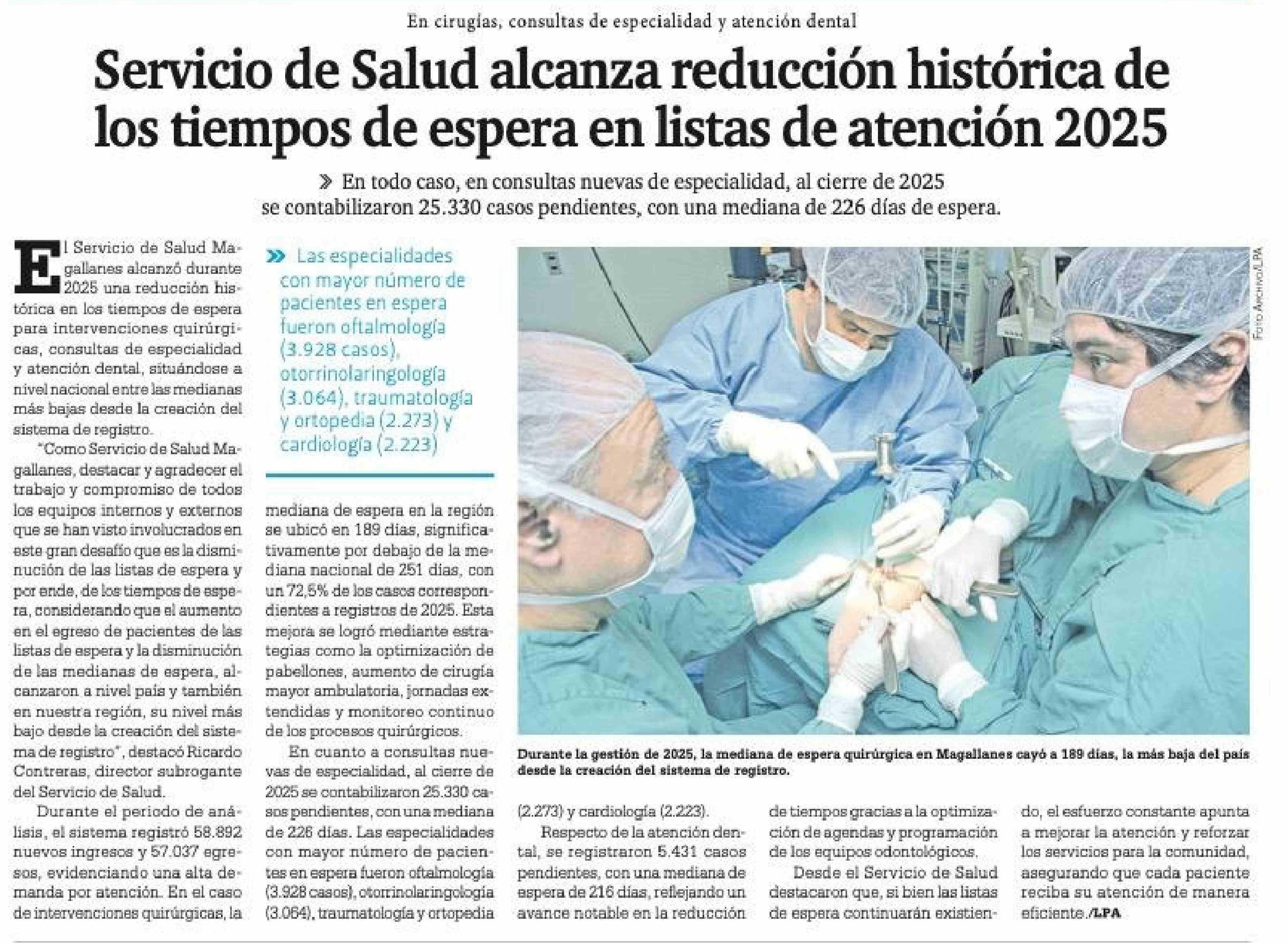Servicio de Salud alcanza reducción histórica de los tiempos de espera en listas de atención 2025 11-02-2026 La Prensa Austral |