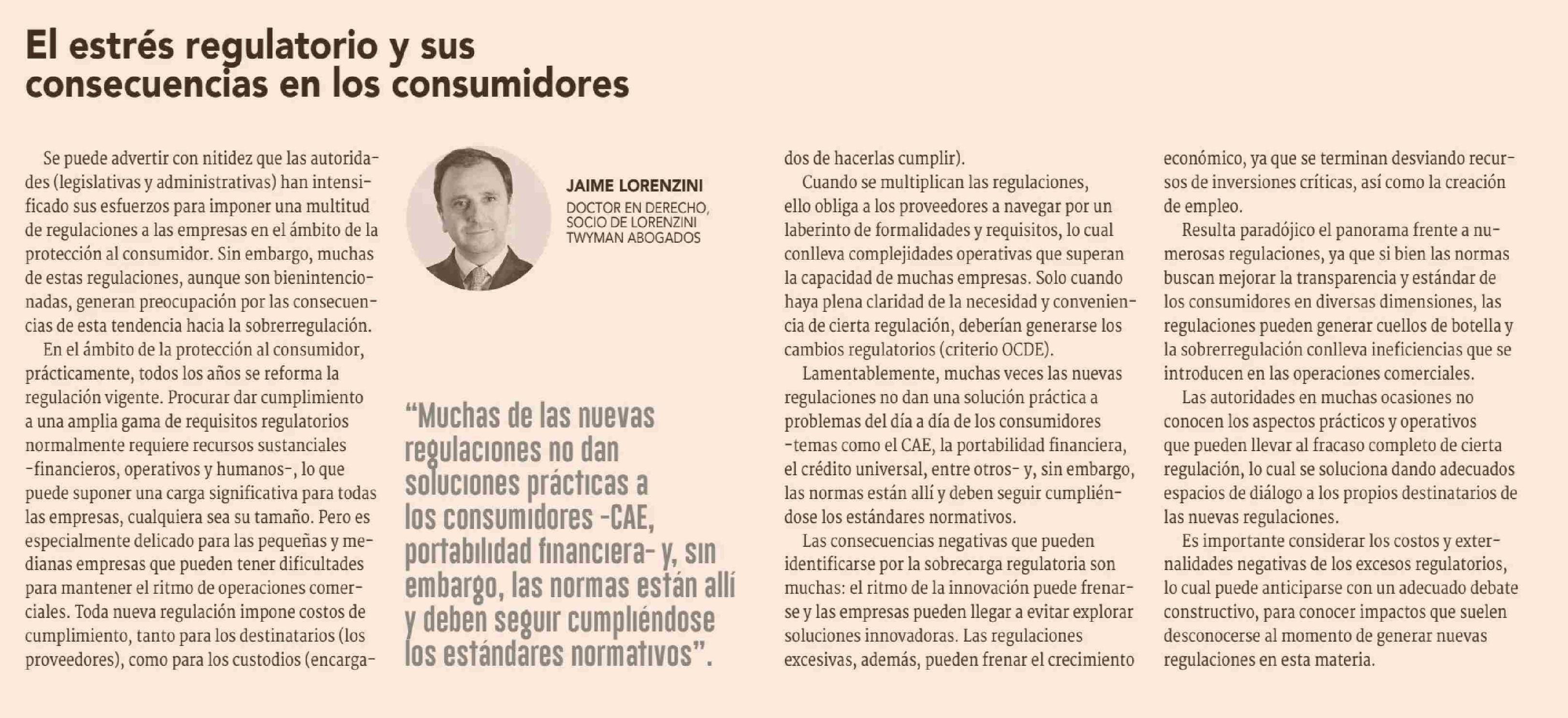 | Título: | COLUMNAS DE OPINIÓN: El estrés regulatorio y sus consecuencias en los consumidores |