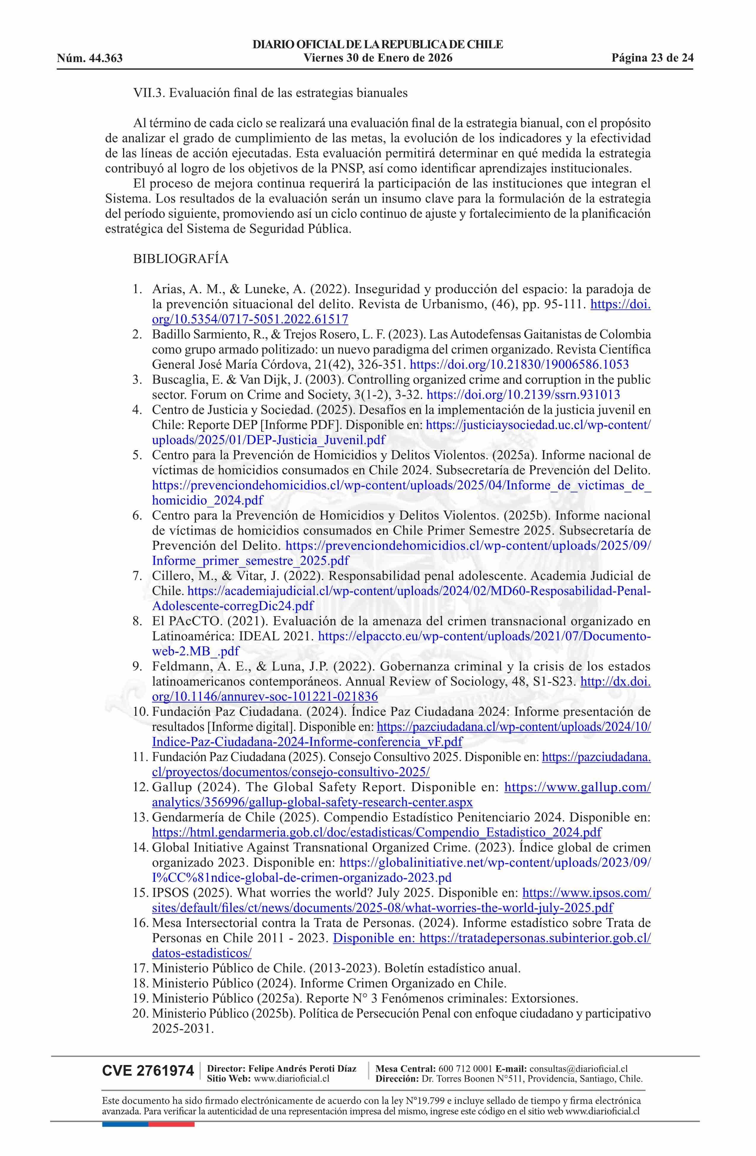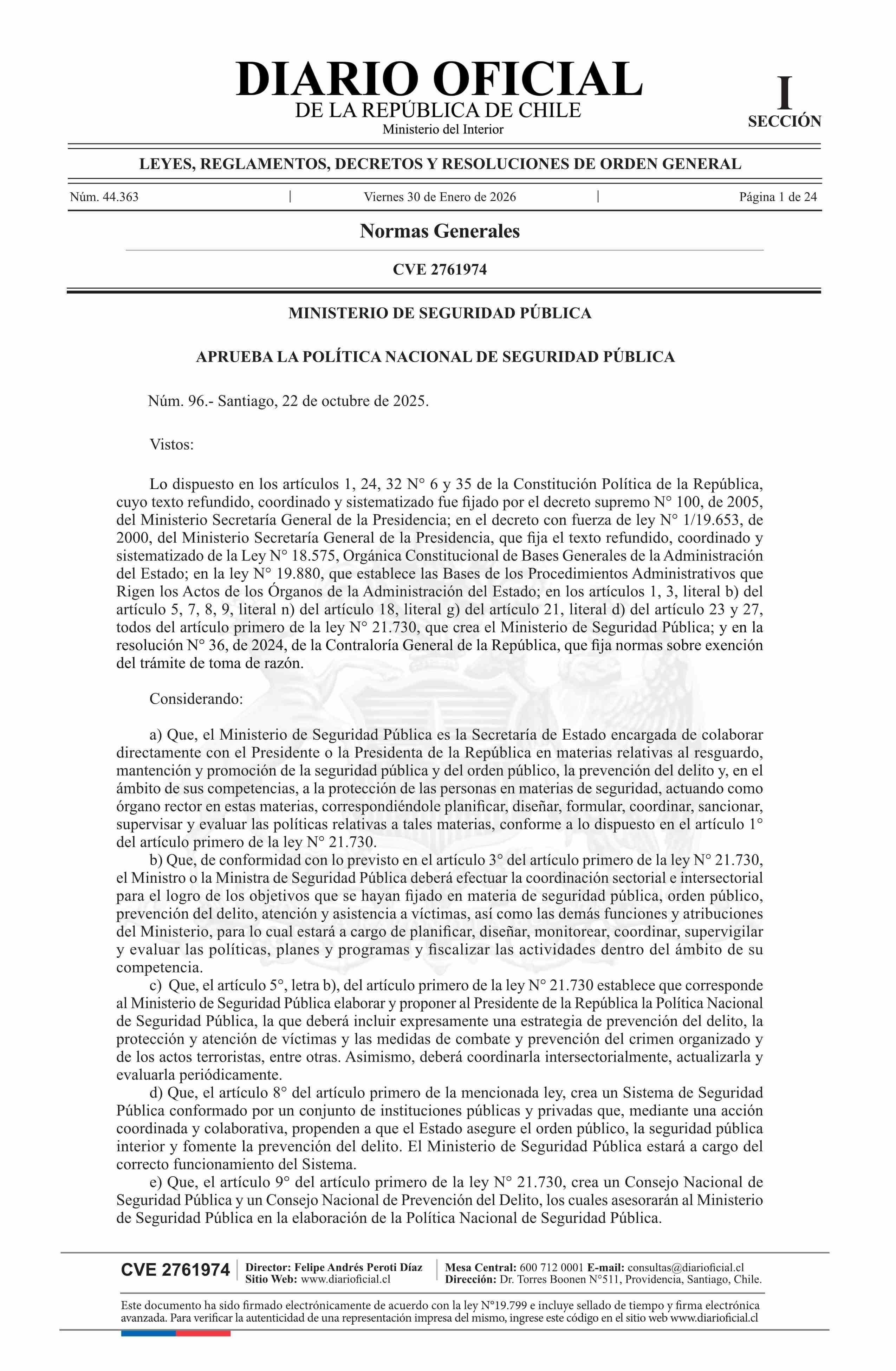 Título: Decreto número 96, de 2025.- Aprueba Política Nacional de Seguridad Pública