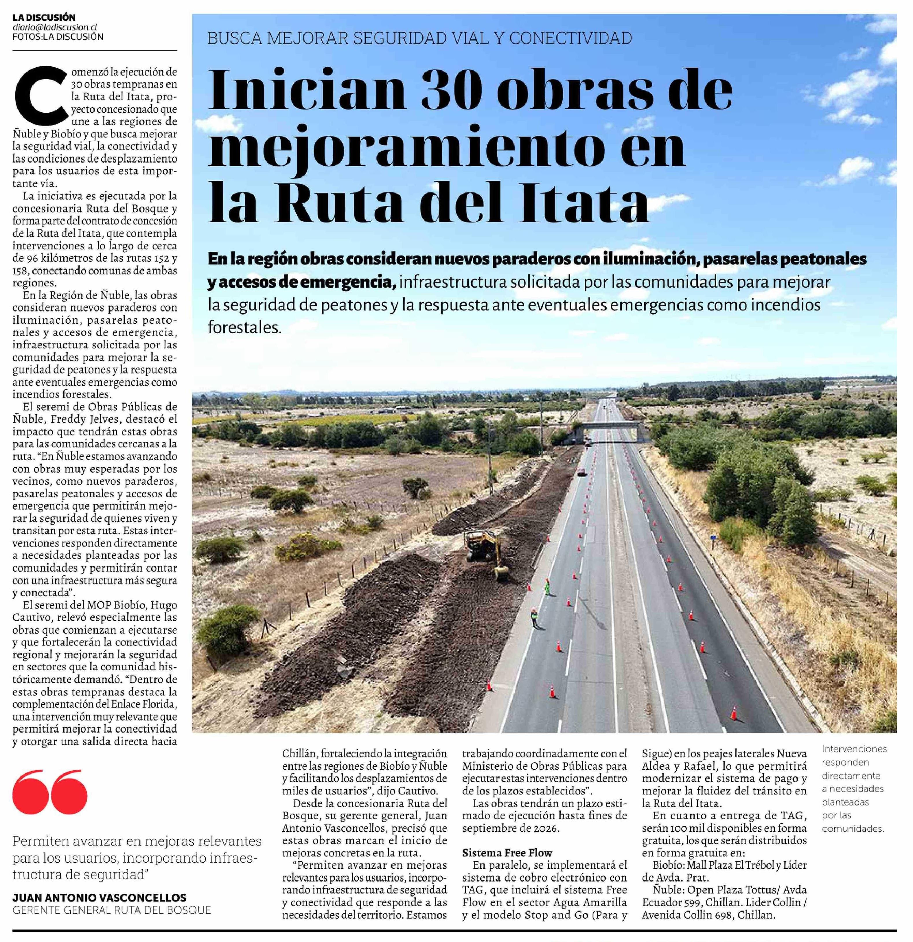 Título: Inician 30 obras de mejoramiento en la Ruta del Itata