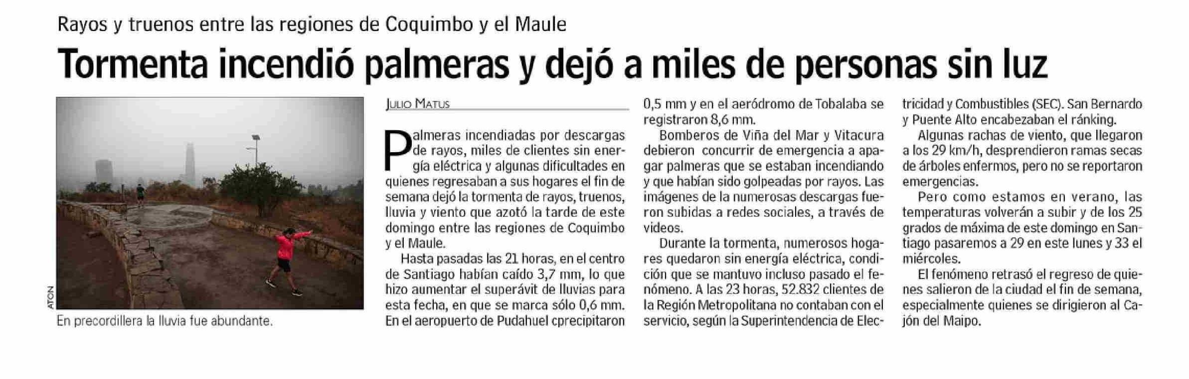 | Título: | Tormenta incendió palmeras y dejó a miles de personas sin luz |