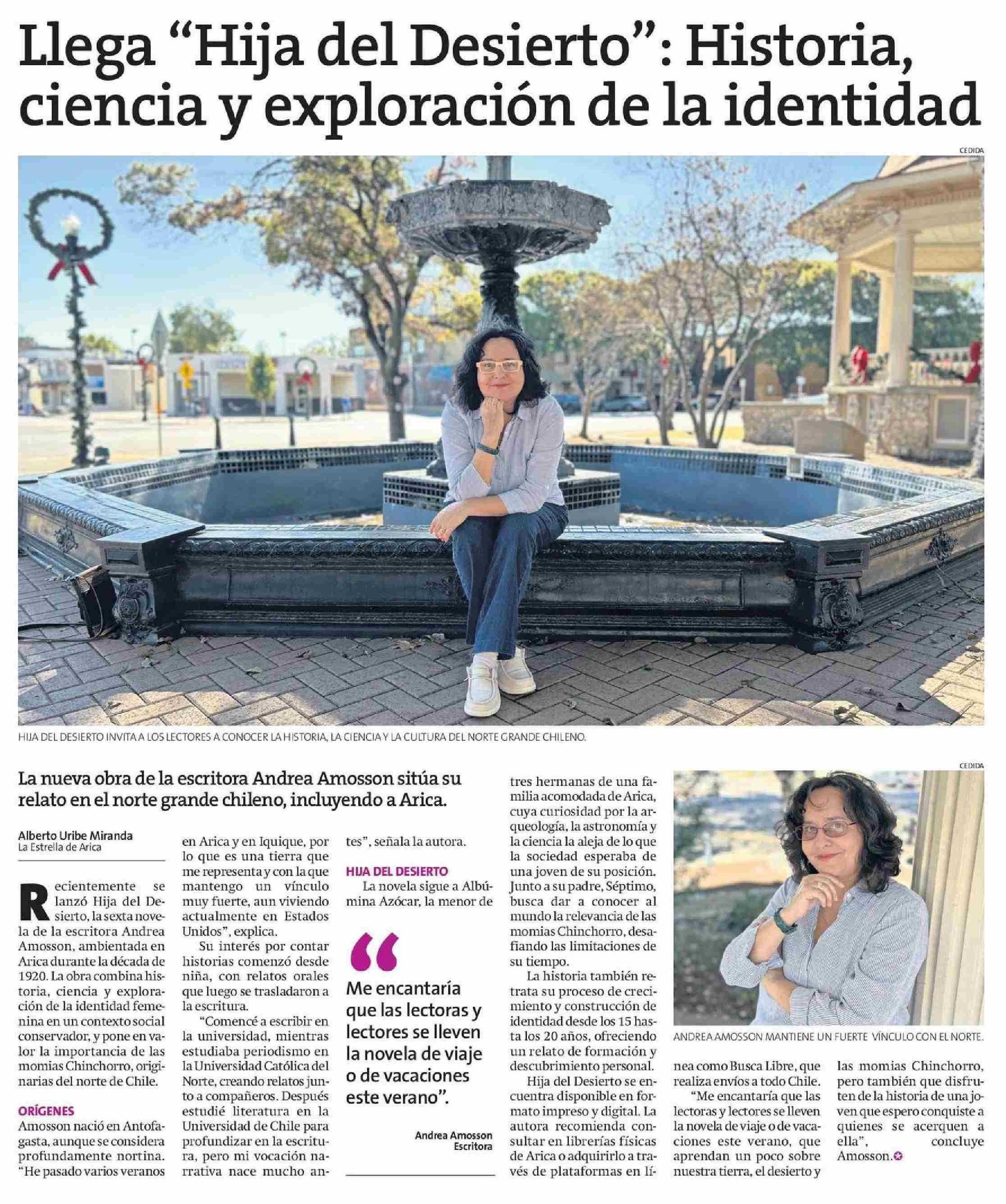 Llega "Hija del Desierto": Historia, ciencia y exploración de la identidad 14-01-2026 La Estrella de Arica |