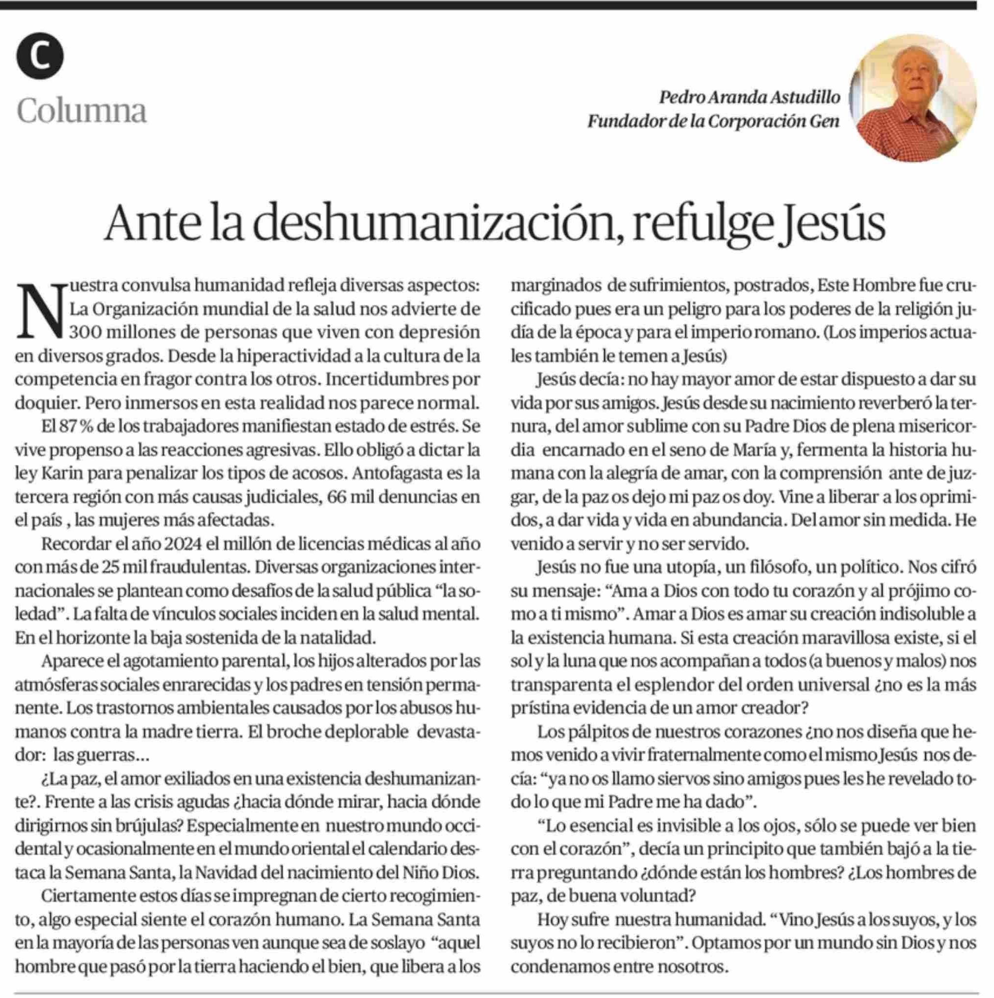 Título: COLUMNAS DE OPINIÓN: Ante la deshumanización, refulge Jesús