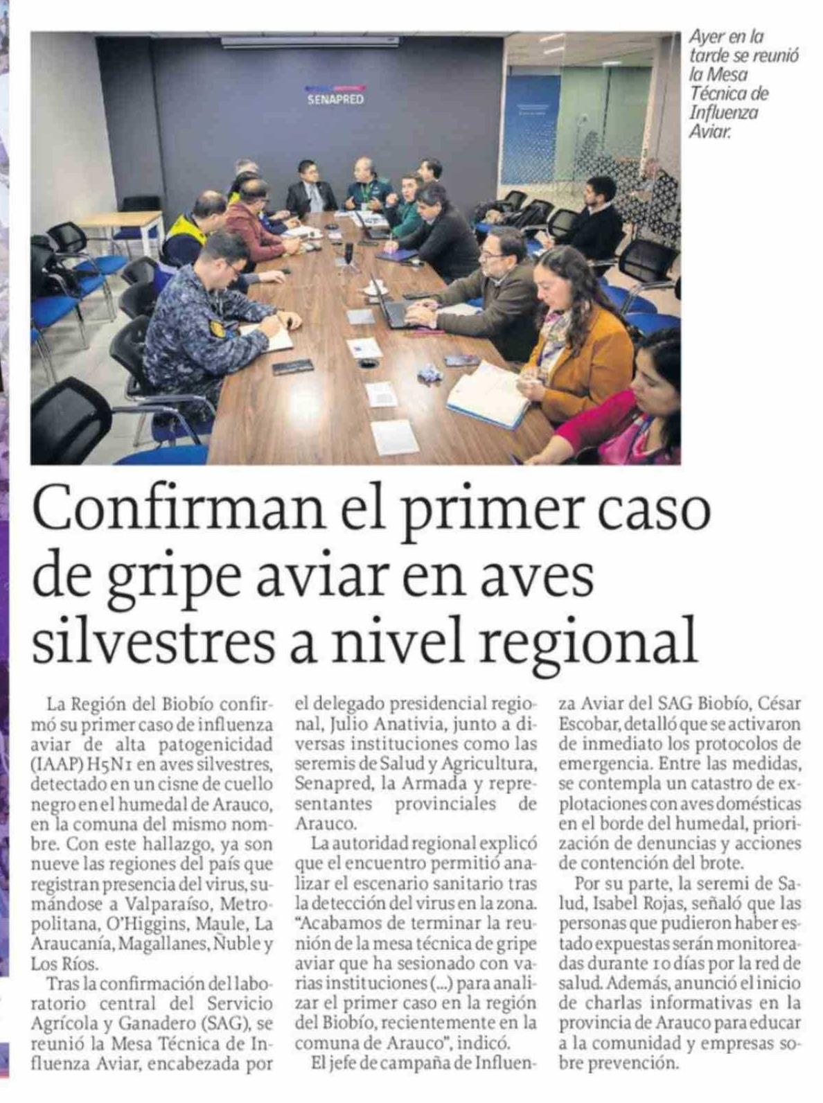 | Título: | Confirman el primer caso de gripe aviar en aves silvestres a nivel regional |