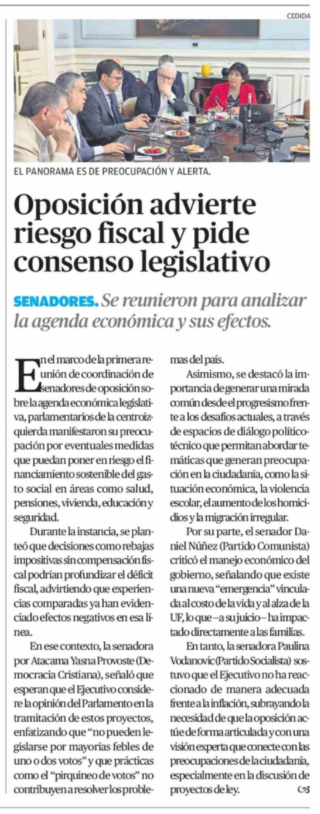 Oposición advierte riesgo fiscal y pide consenso legislativo 07-04-2026 El Diario de Atacama |