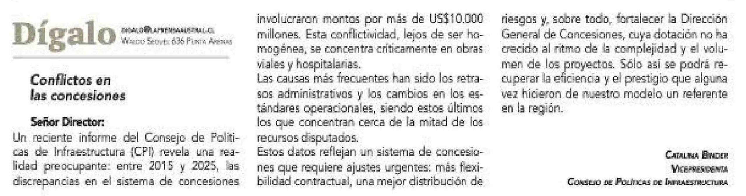 Cartas: Conflictos en las concesiones 19-02-2026 La Prensa Austral |