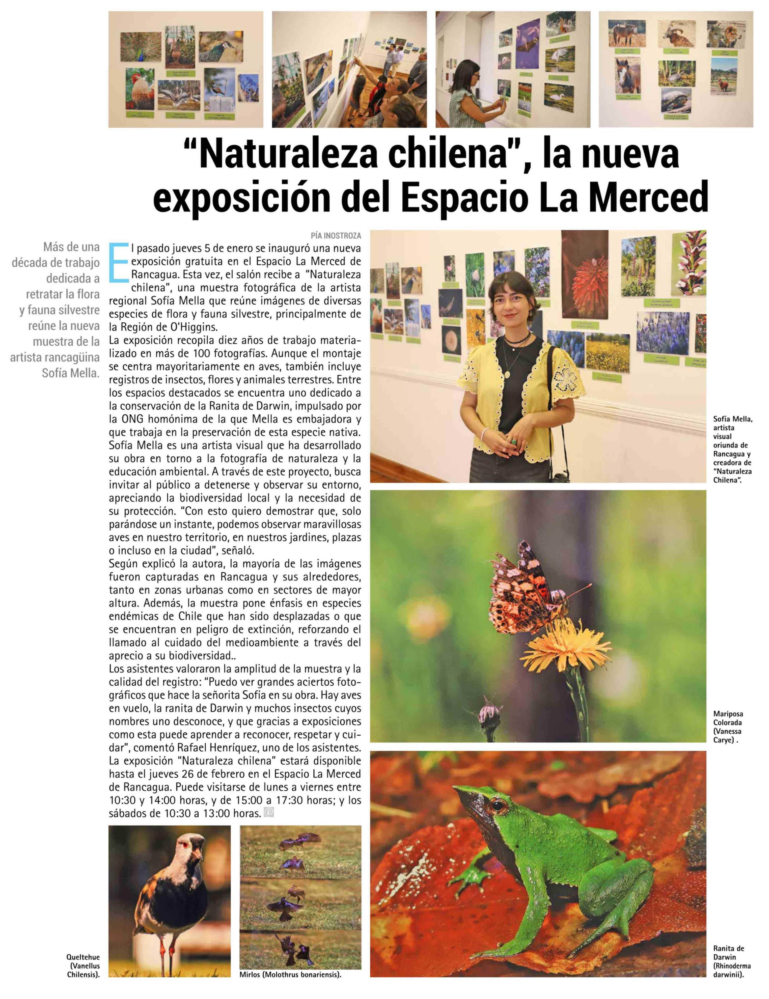 "Naturaleza chilena", la nueva exposición del Espacio La Merced 12-02-2026 El Rancagüino |