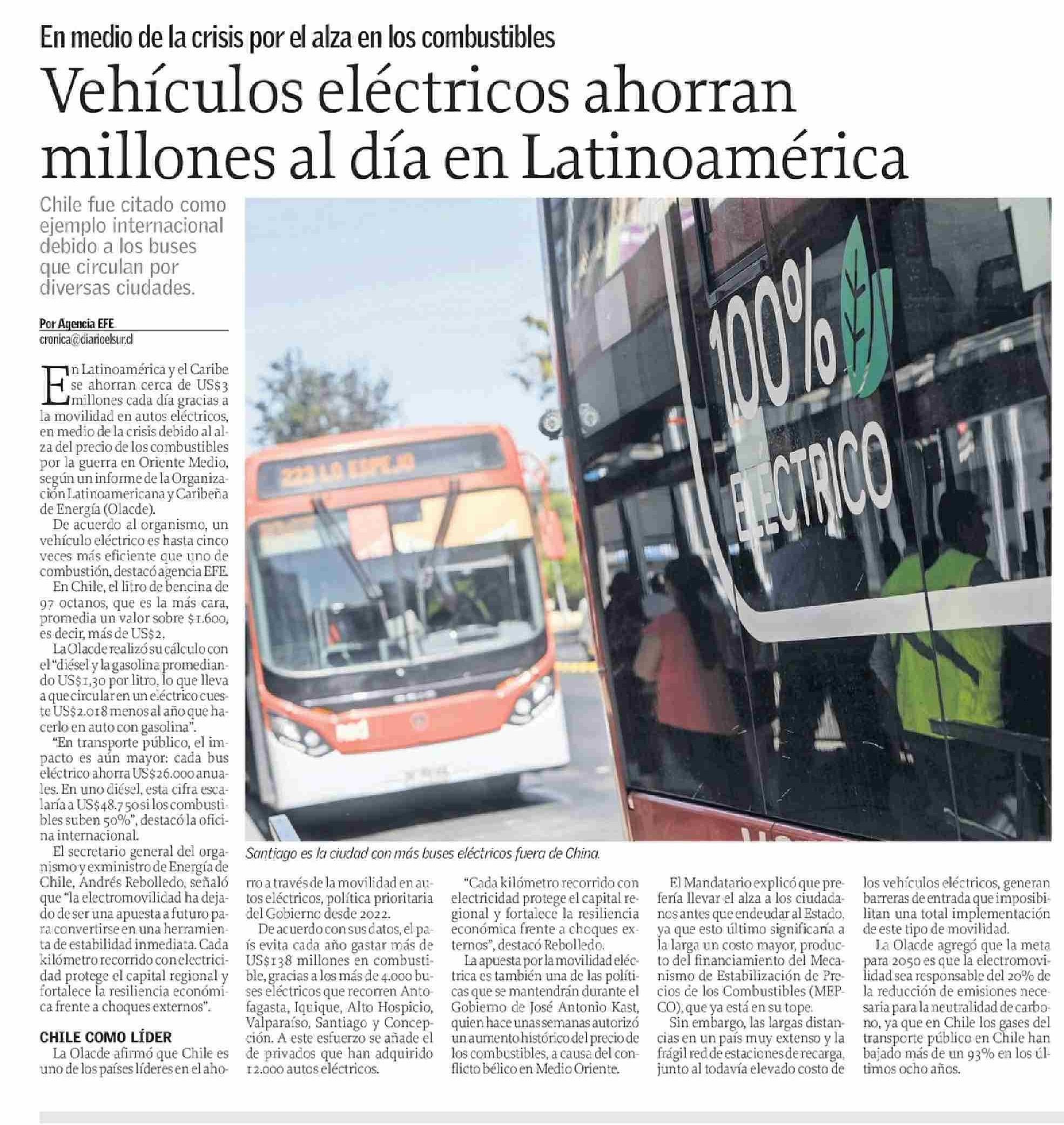 Vehículos eléctricos ahorran millones al día en Latinoamérica 18-04-2026 El Sur |