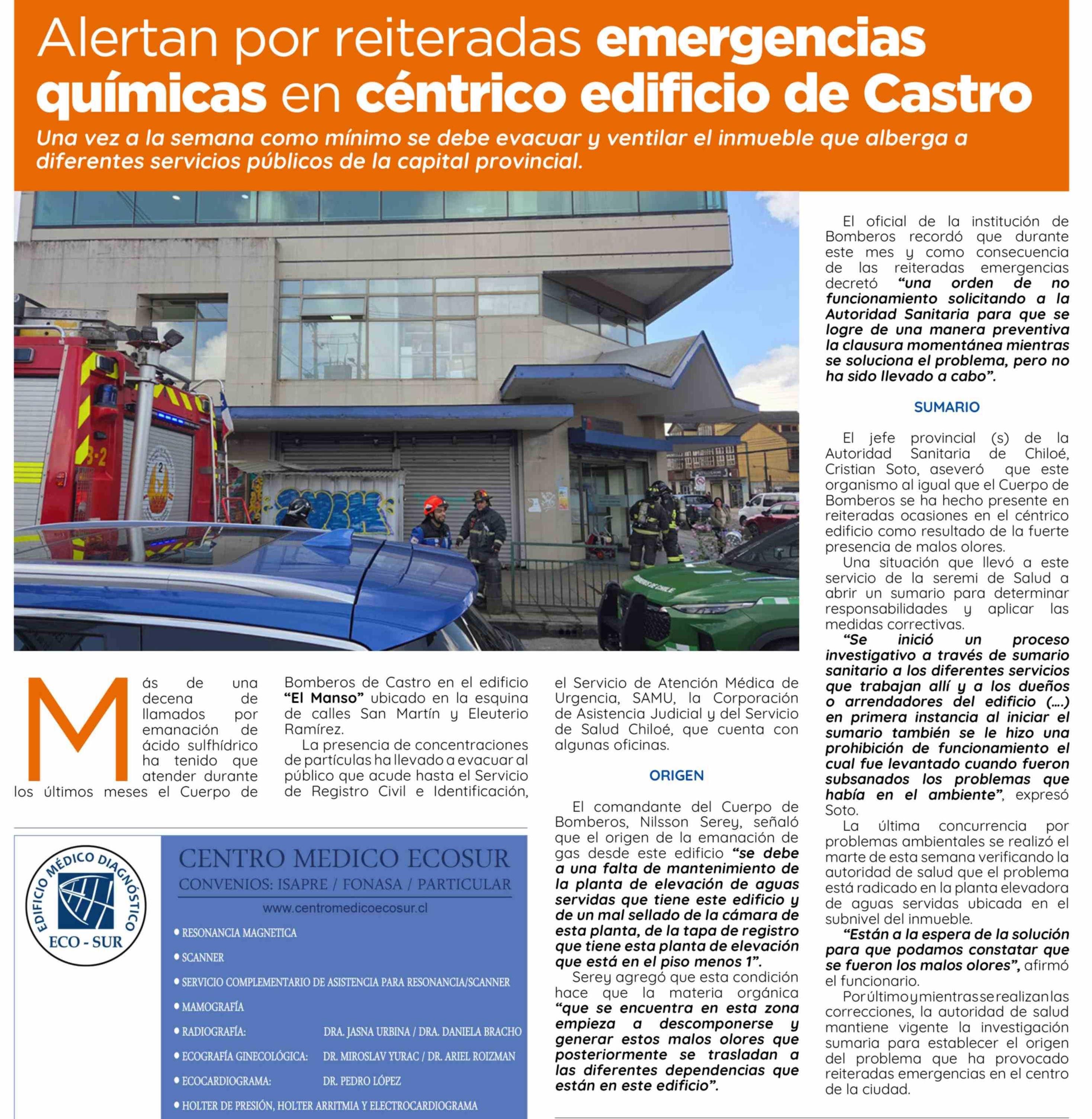 Título: Alertan por reiteradas emergencias químicas en céntrico edificio de Castro