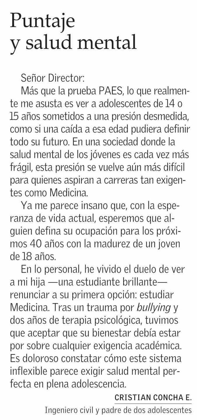 CARTAS: Puntaje y salud mental 21-06-2025 El Mercurio |