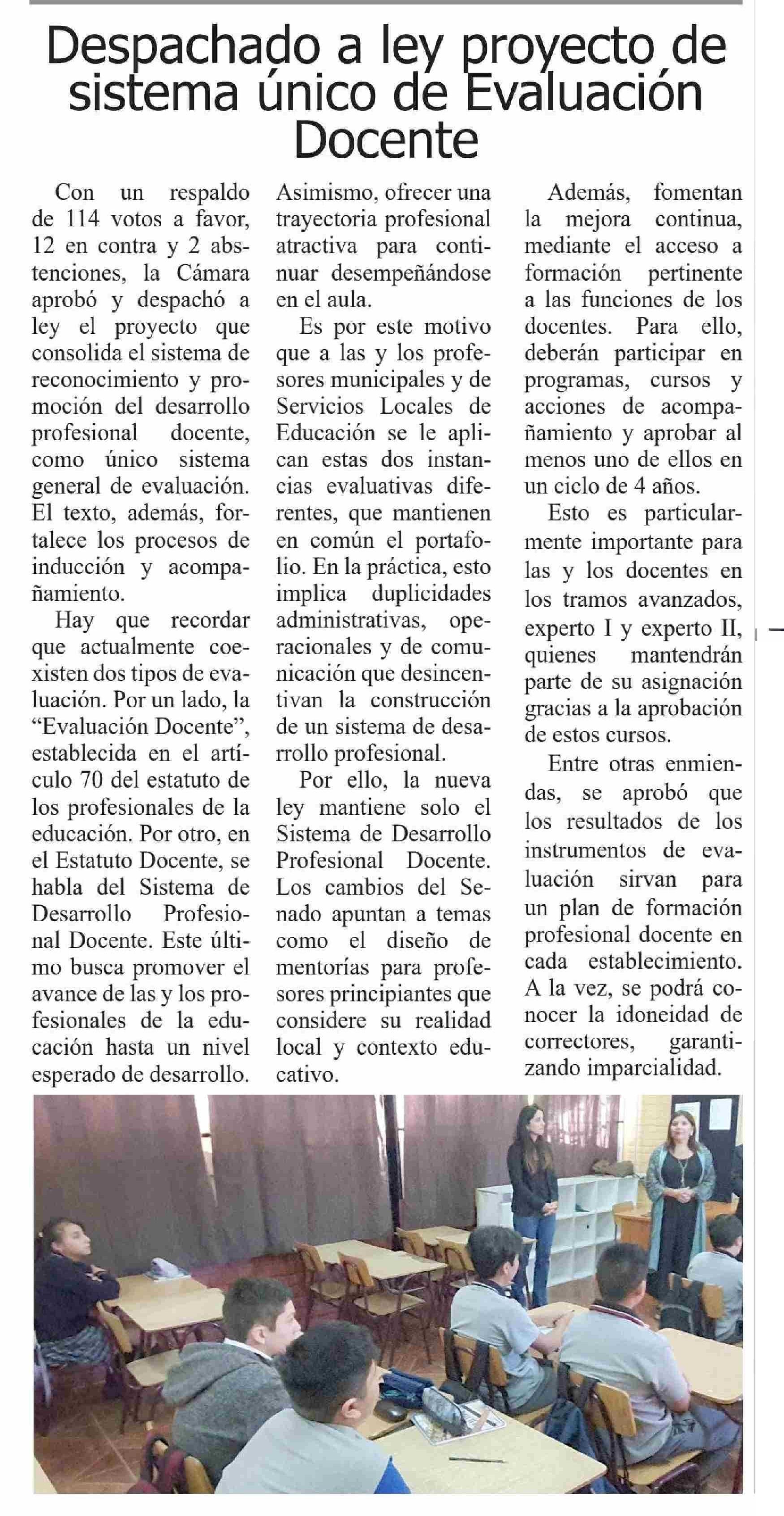 Despachado a ley proyecto de sistema único de Evaluación Docente 13-10-2023 El Heraldo |
