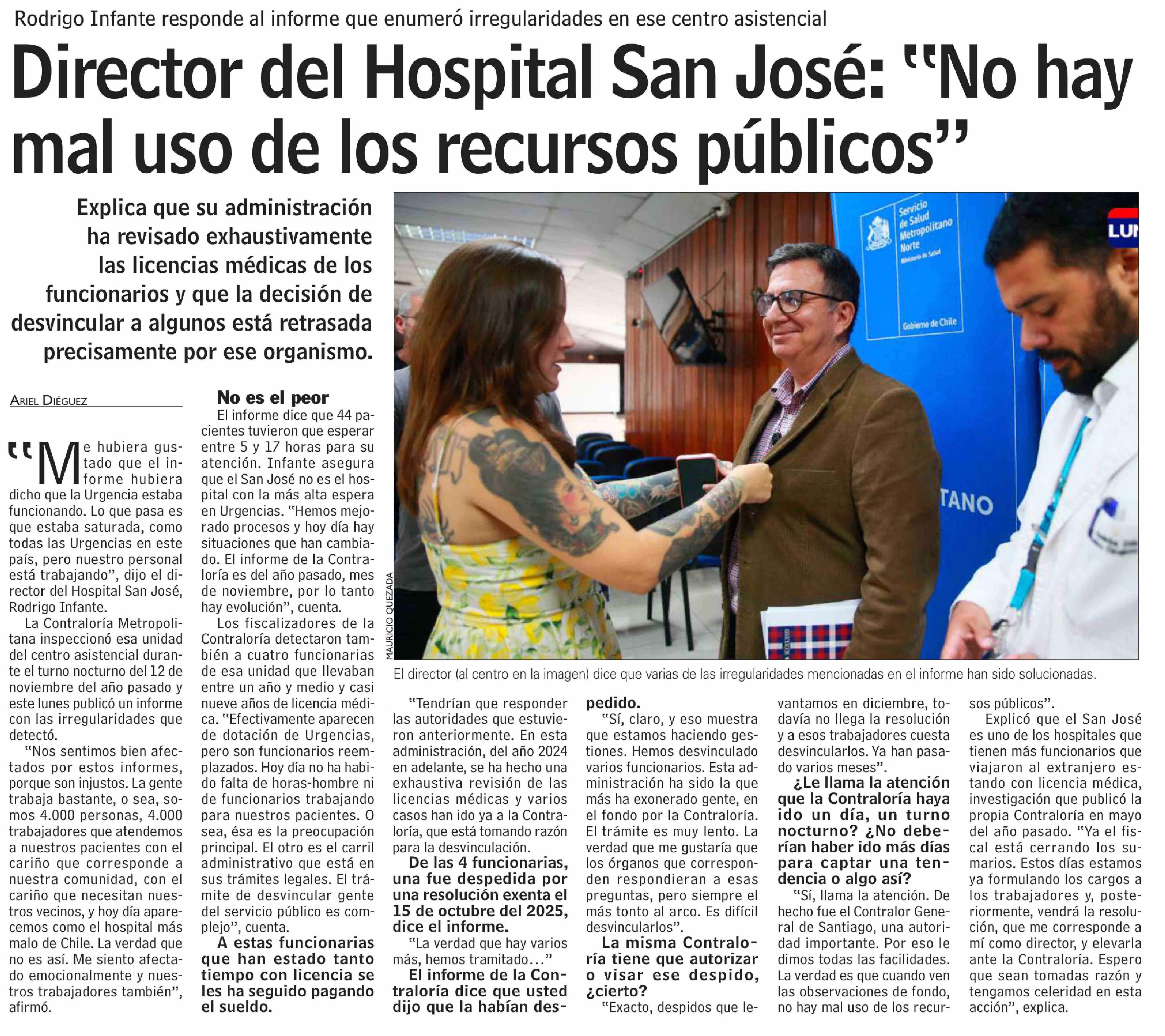 Título: Director del Hospital San José: "No hay mal uso de los recursos públicos"