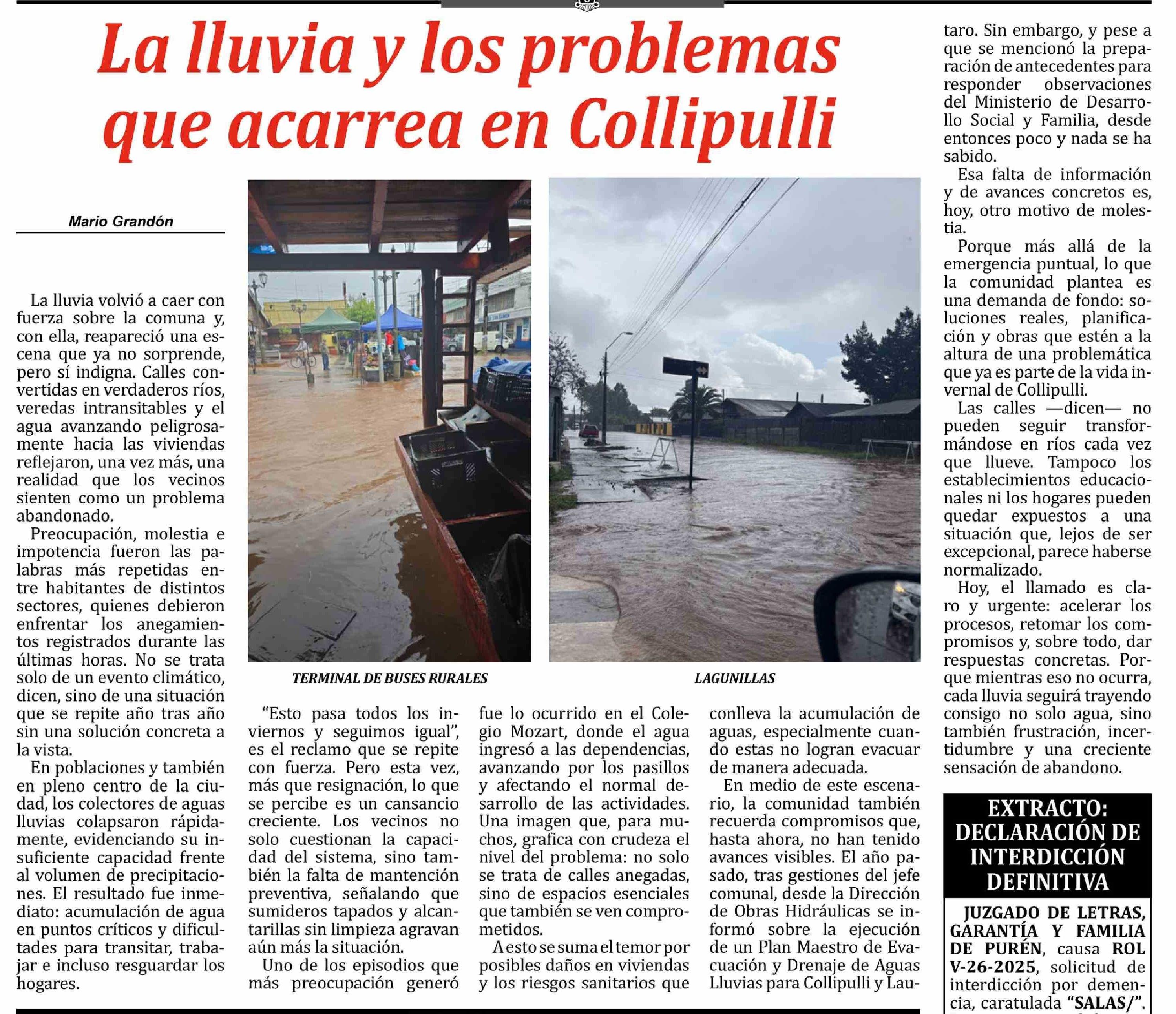 Título: La lluvia y los problemas que acarrea en Collipulli