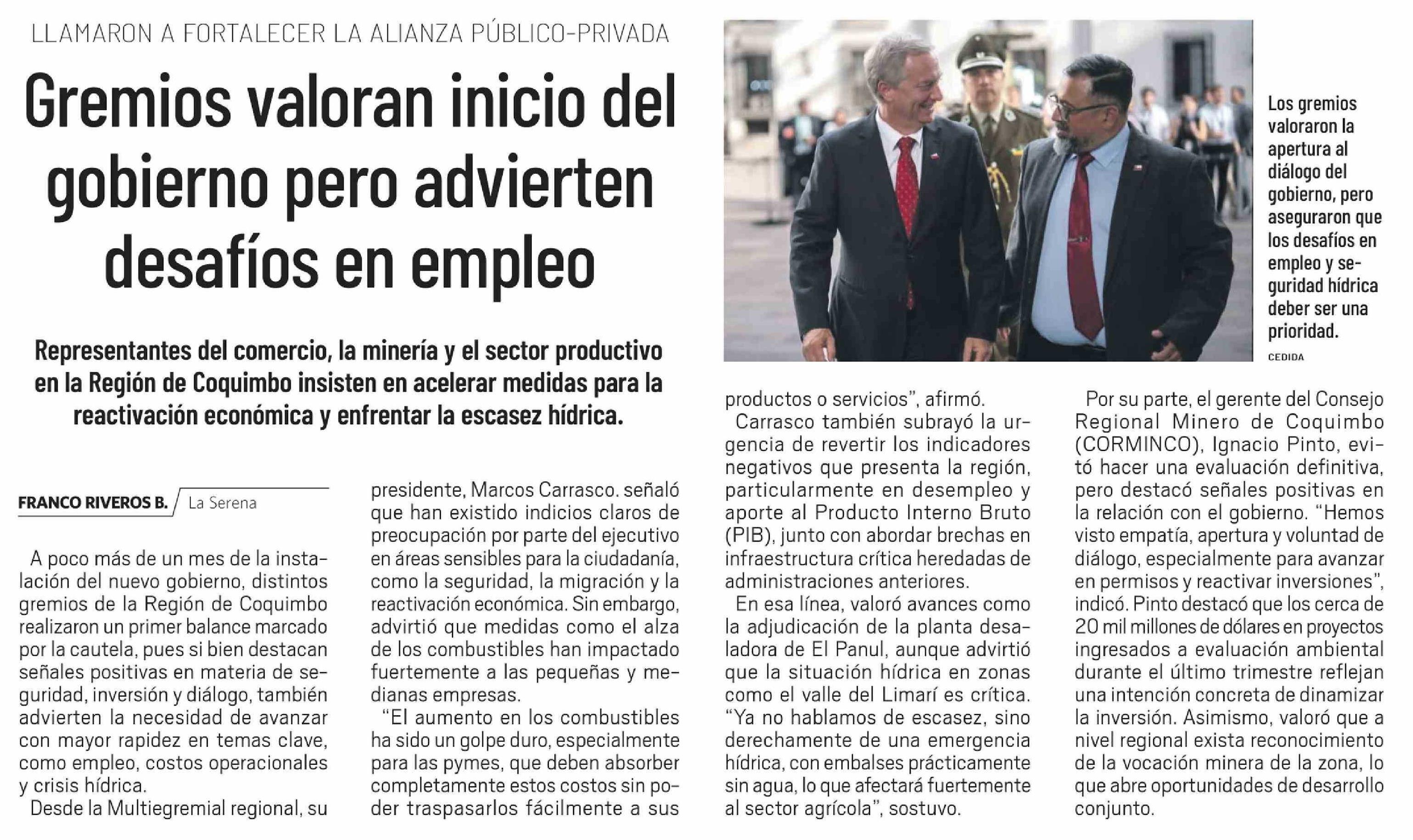 Título: Gremios valoran inicio del gobierno pero advierten desafíos en empleo