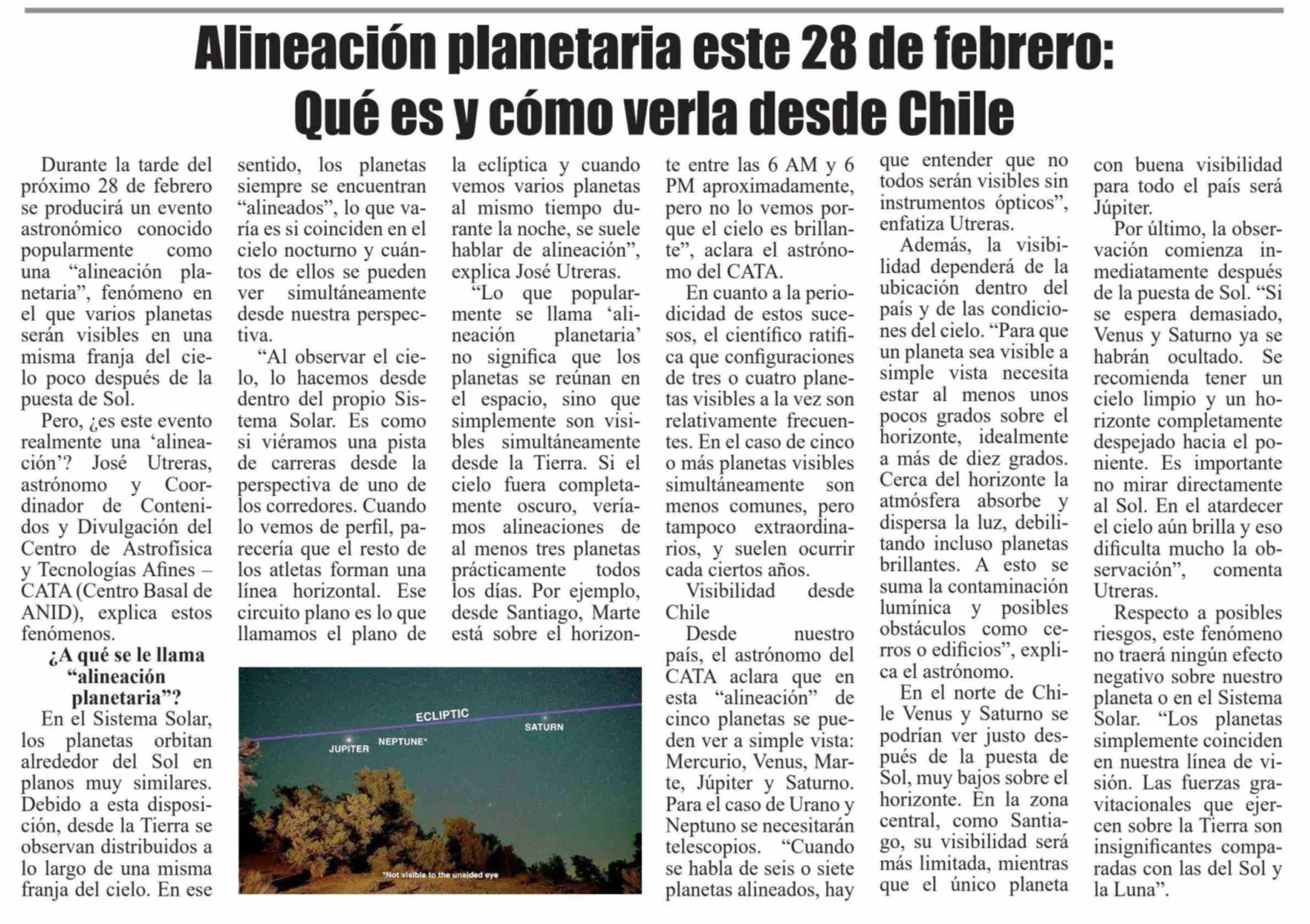 | Título: | Alineación planetaria este 28 de febrero: Qué es y cómo verla desde Chile |