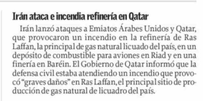 Título: Irán ataca e incendia refinería en Qatar
