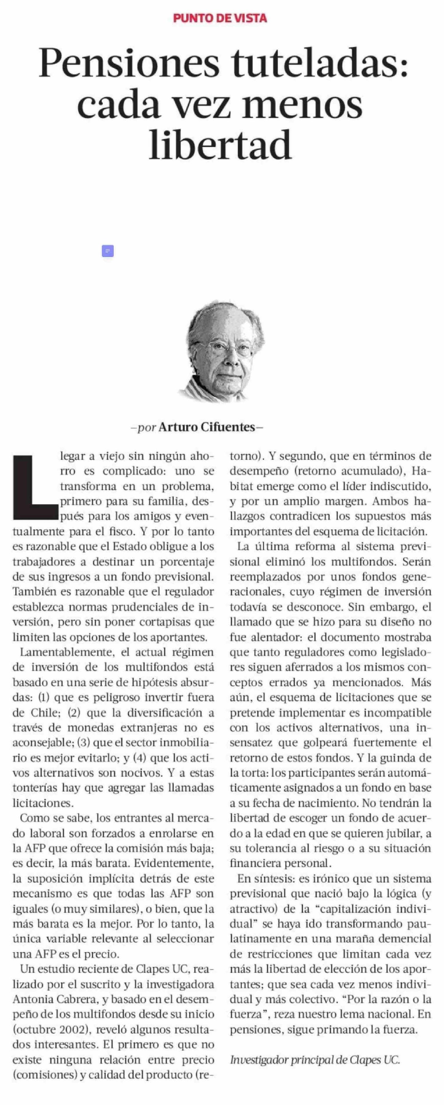 Título: Columnas de Opinión: Pensiones tuteladas: cada vez menos libertad