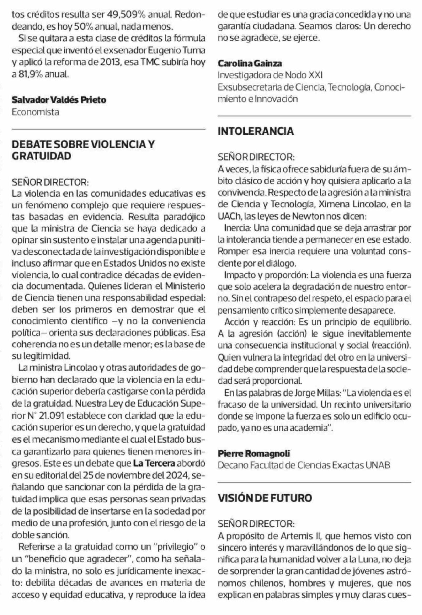 Cartas: DEBATE SOBRE VIOLENCIA Y GRATUIDAD