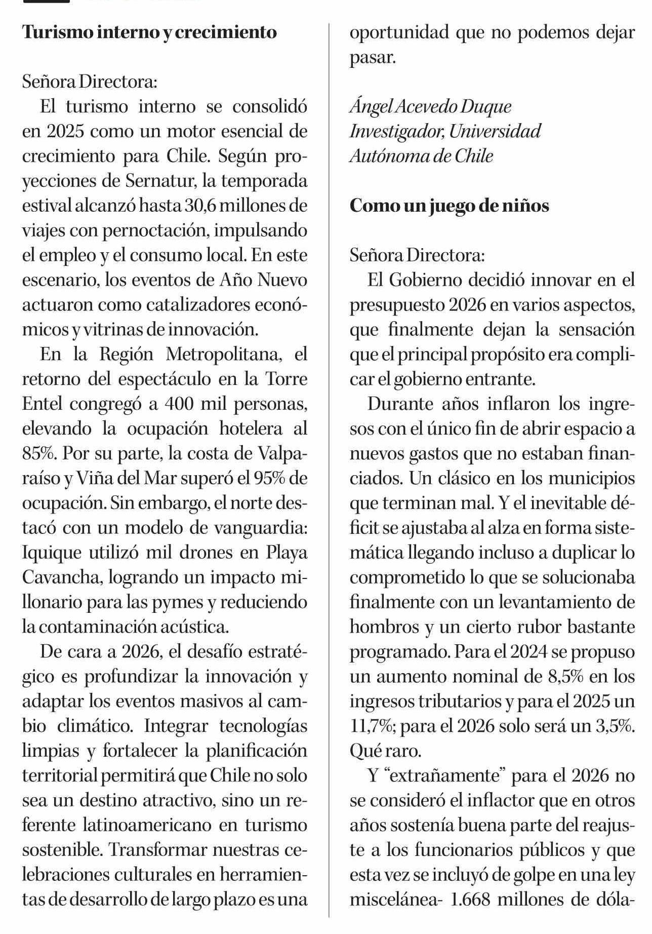 Cartas: Turismo interno y crecimiento