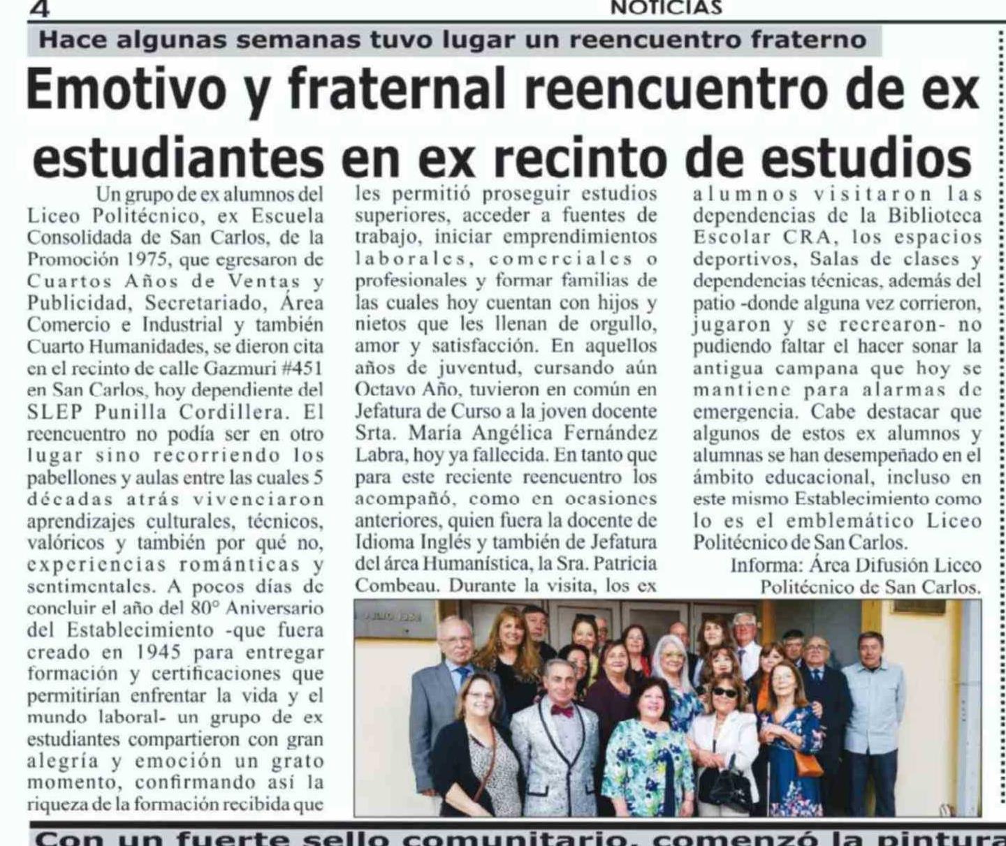 Título: Emotivo y fraternal reencuentro de ex estudiantes en ex recinto de estudios