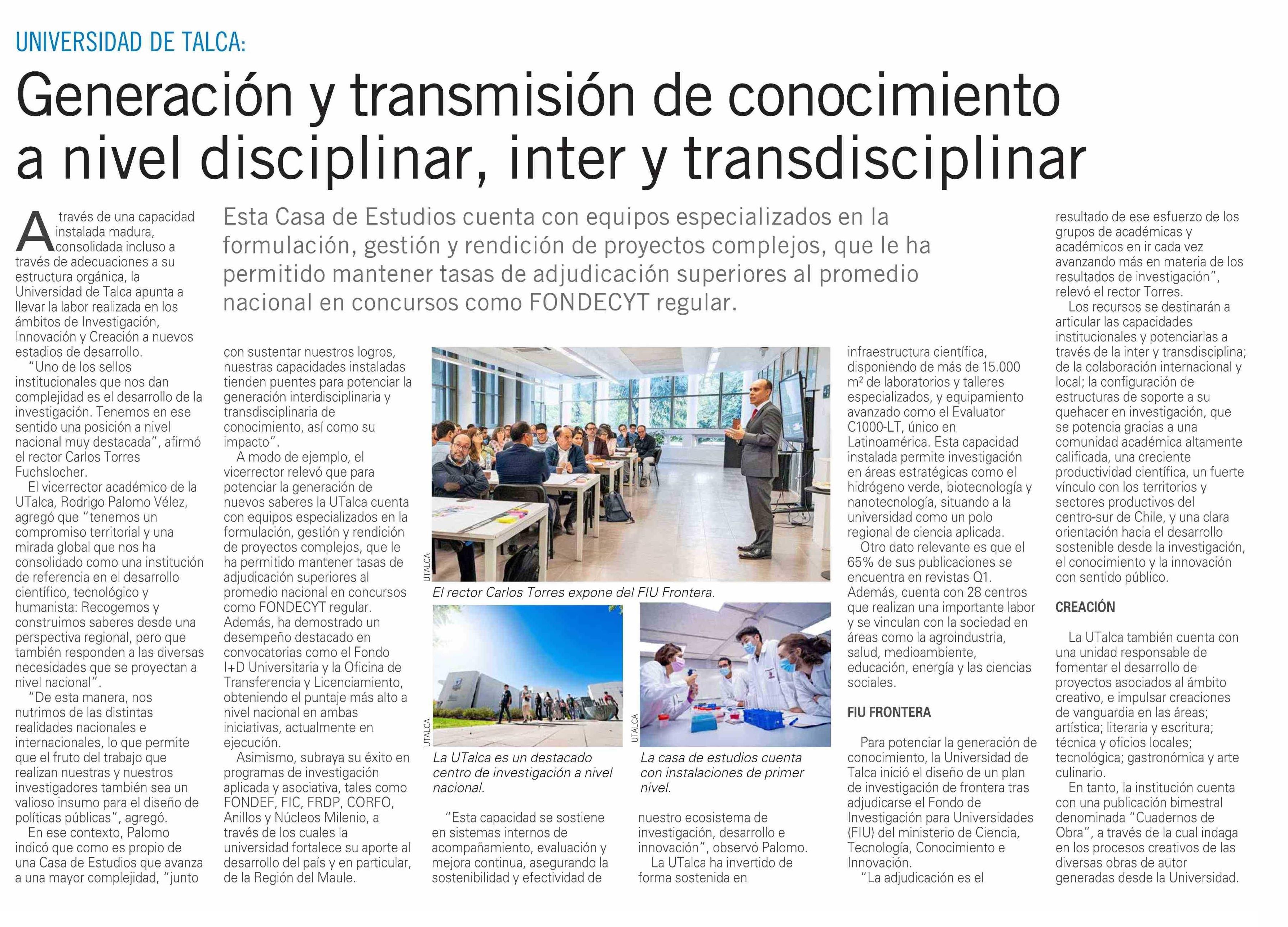 Generación y transmisión de conocimiento a nivel disciplinar, inter y transdisciplinar 30-04-2025 El Mercurio |