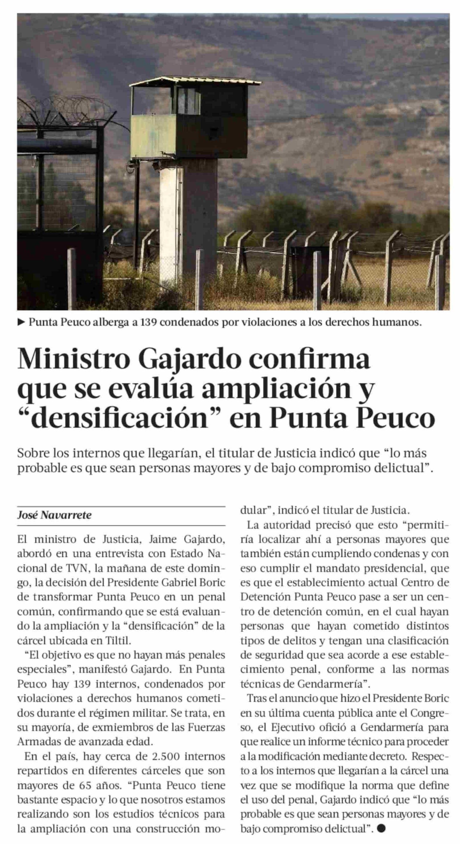 Ministro Gajardo confirma que se evalúa ampliación y "densificación" en Punta Peuco 09-06-2025 La Tercera |