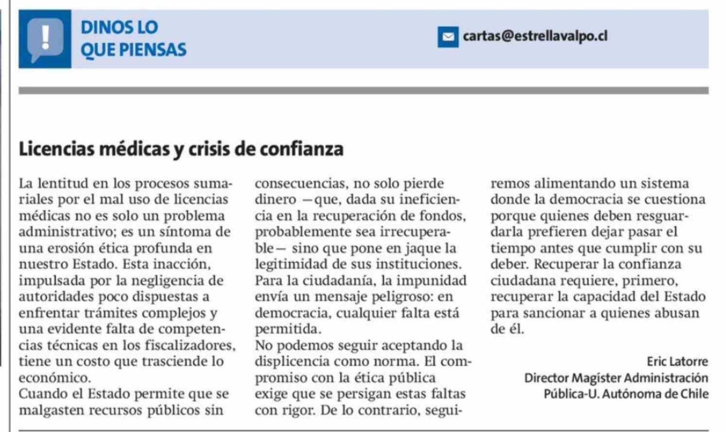 Título: Cartas: Licencias médicas y crisis de confianza