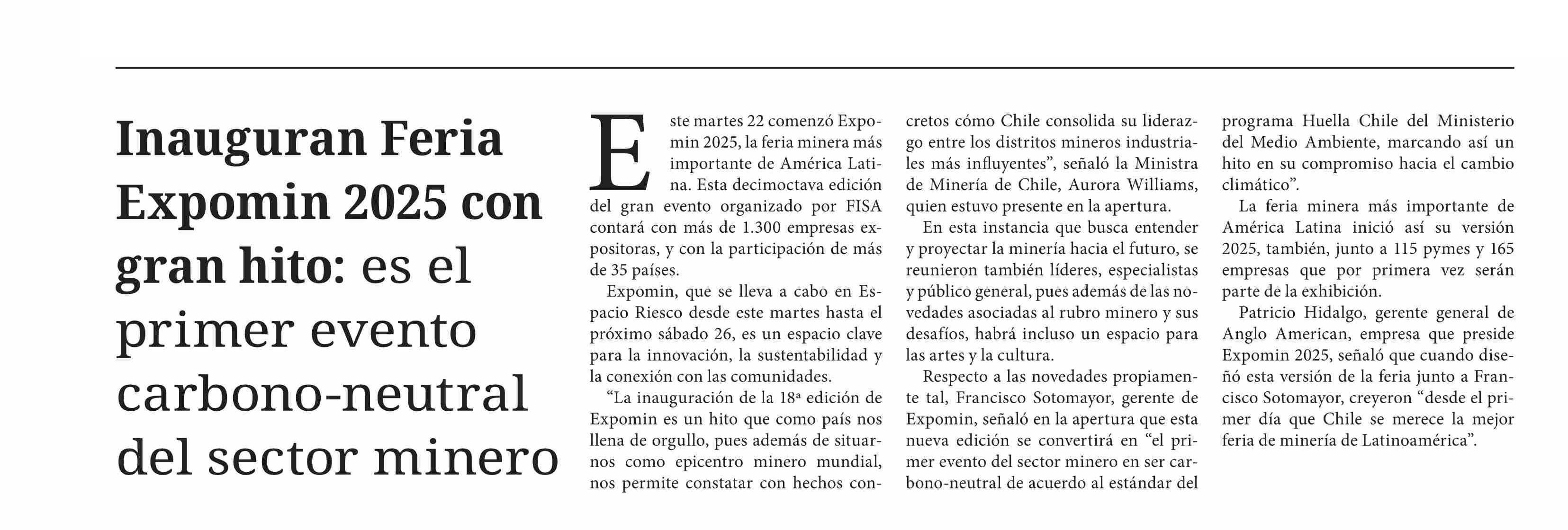 | Título: | Inauguran Feria Expomin 2025 con gran hito: es el primer evento carbono-neutral del sector minero |
