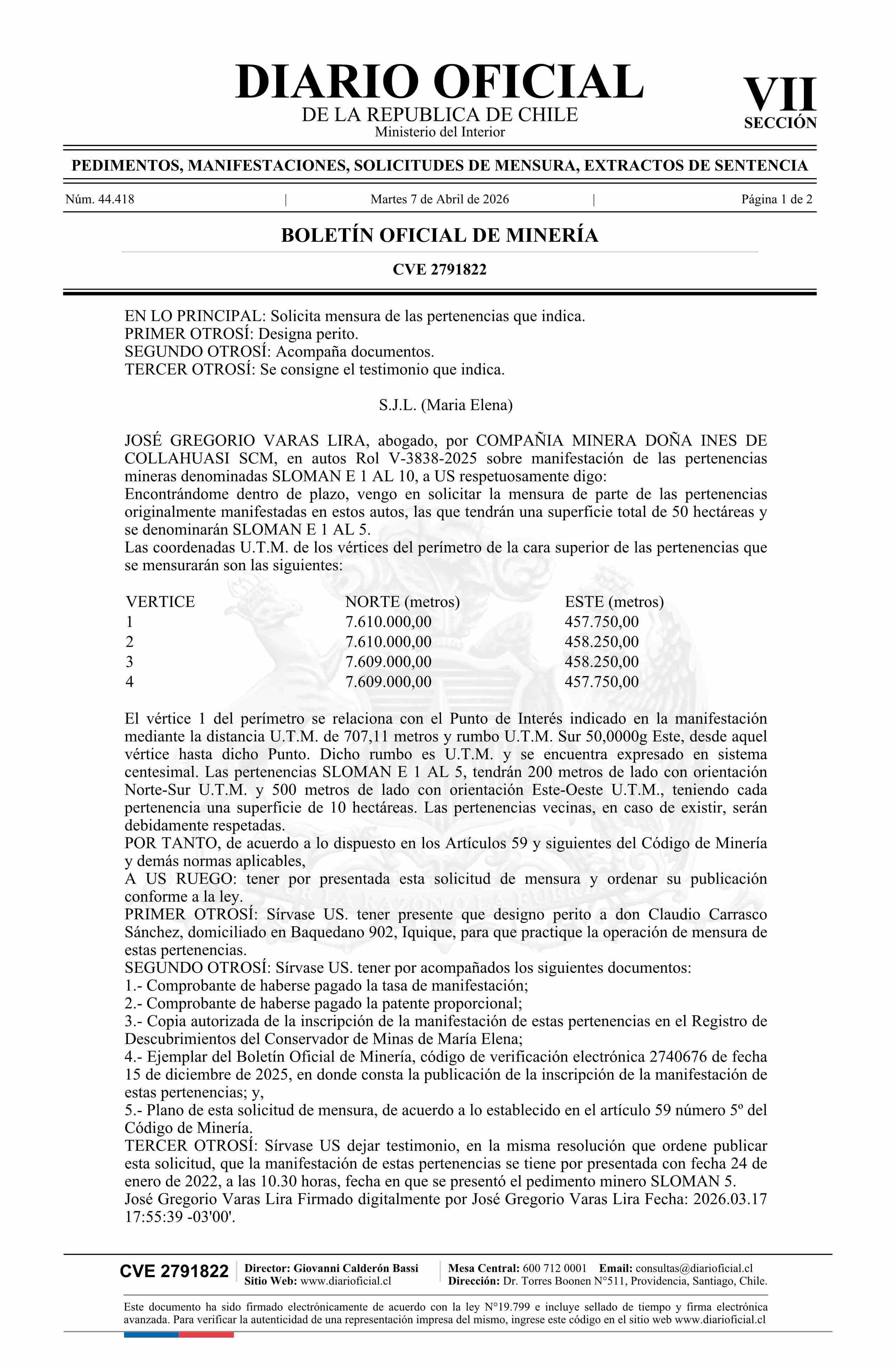 07-04-2026 DIARIO OFICIAL CHILE - BOLETÍN OFICIAL DE MINERÍA