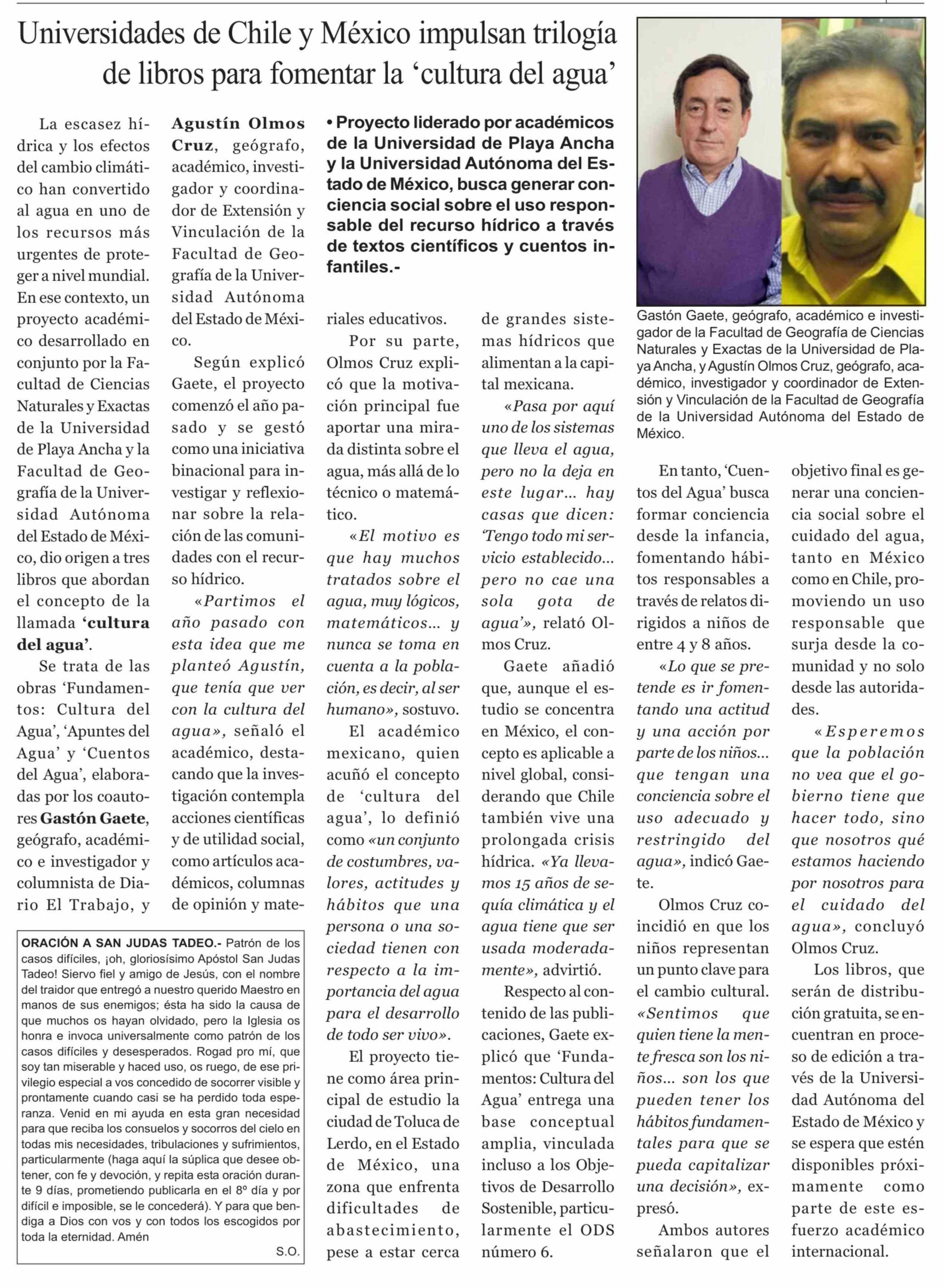 Universidades de Chile y México impulsan trilogía de libros para fomentar la 'cultura del agua' 18-02-2026 El Trabajo |