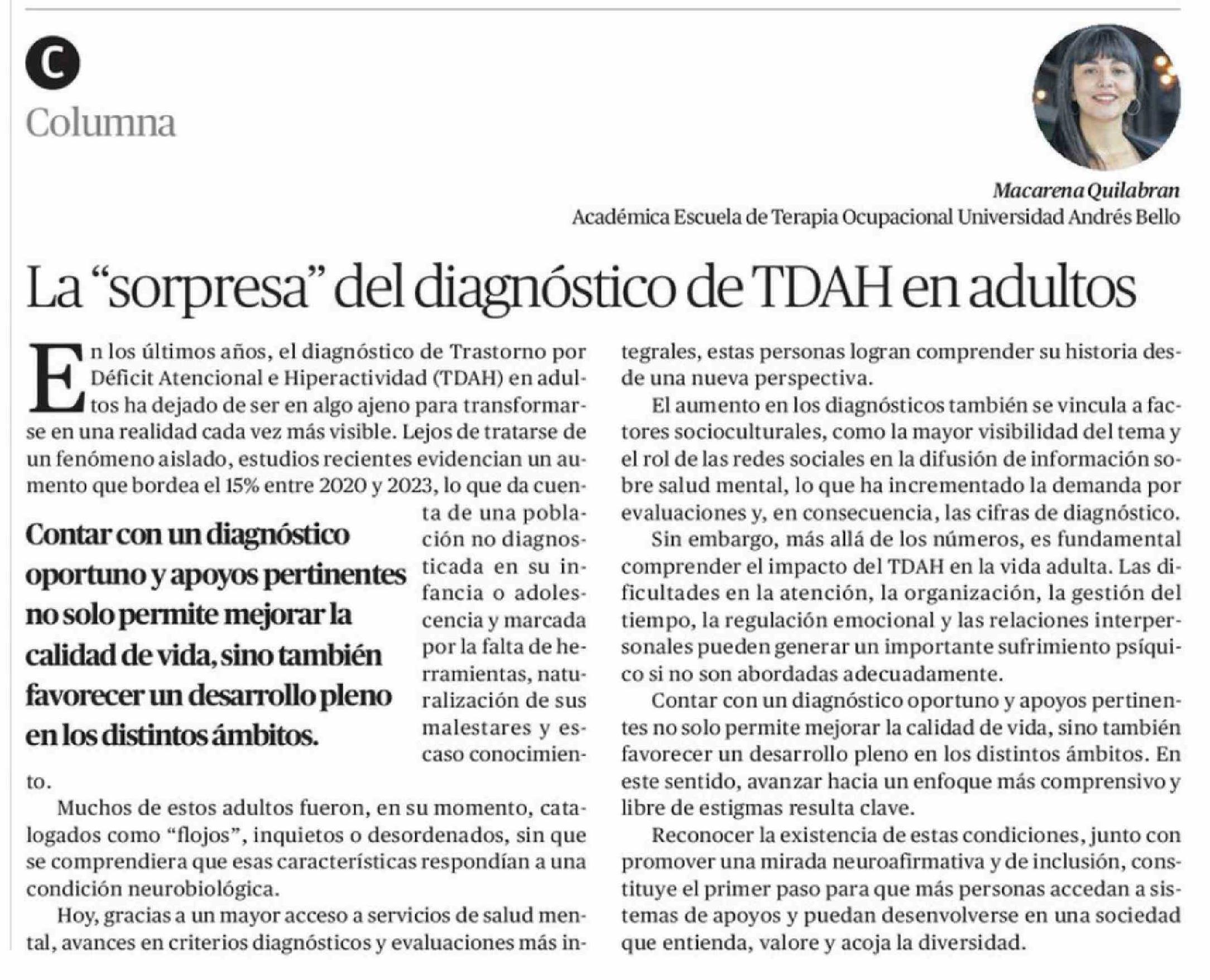 Título: Columnas de Opinión: La "sorpresa" del diagnóstico de TDAH en adultos
