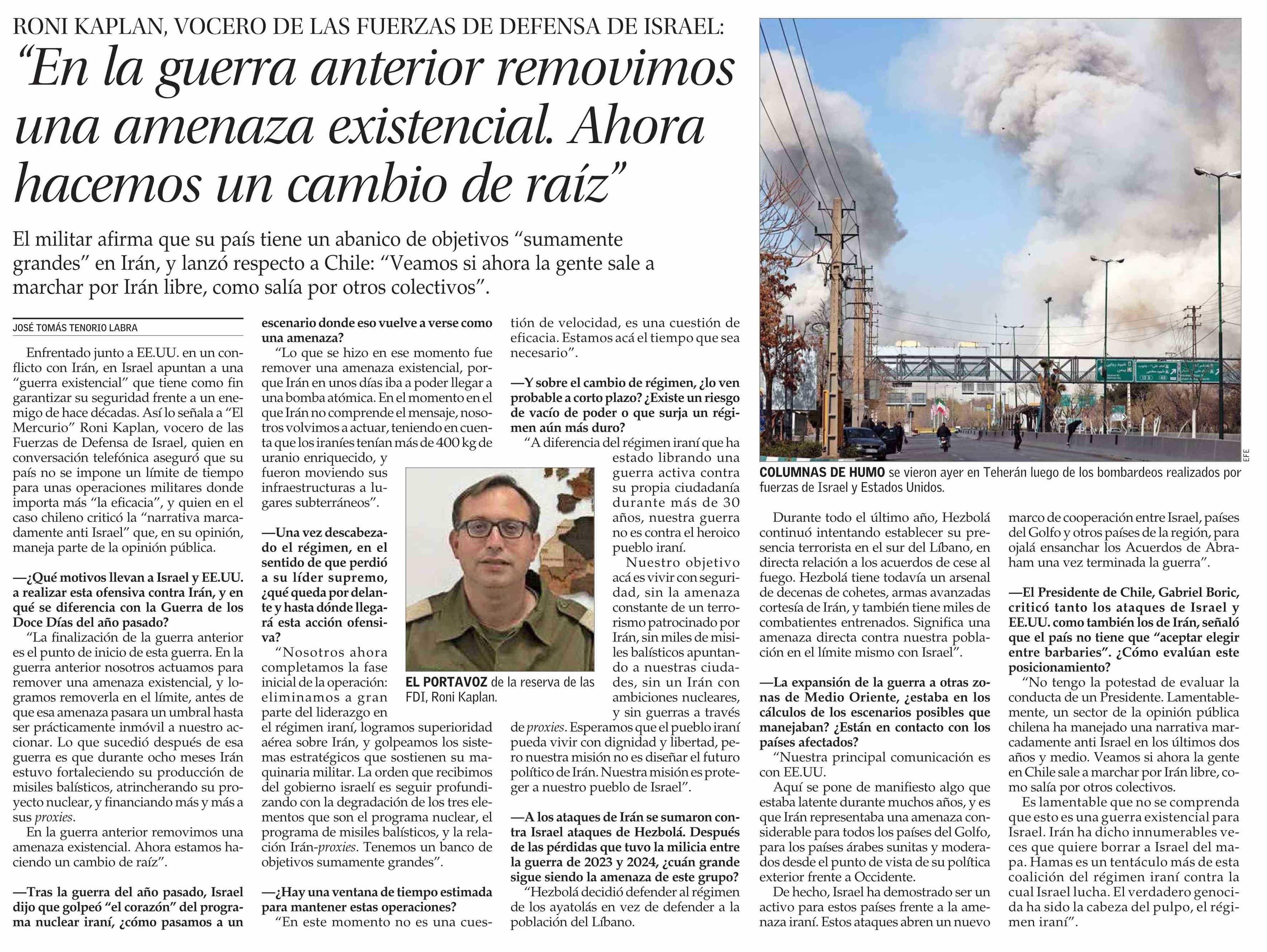 “En la guerra anterior removimos una amenaza existencial. Ahora hacemos un cambio de raíz” 06-03-2026 El Mercurio |