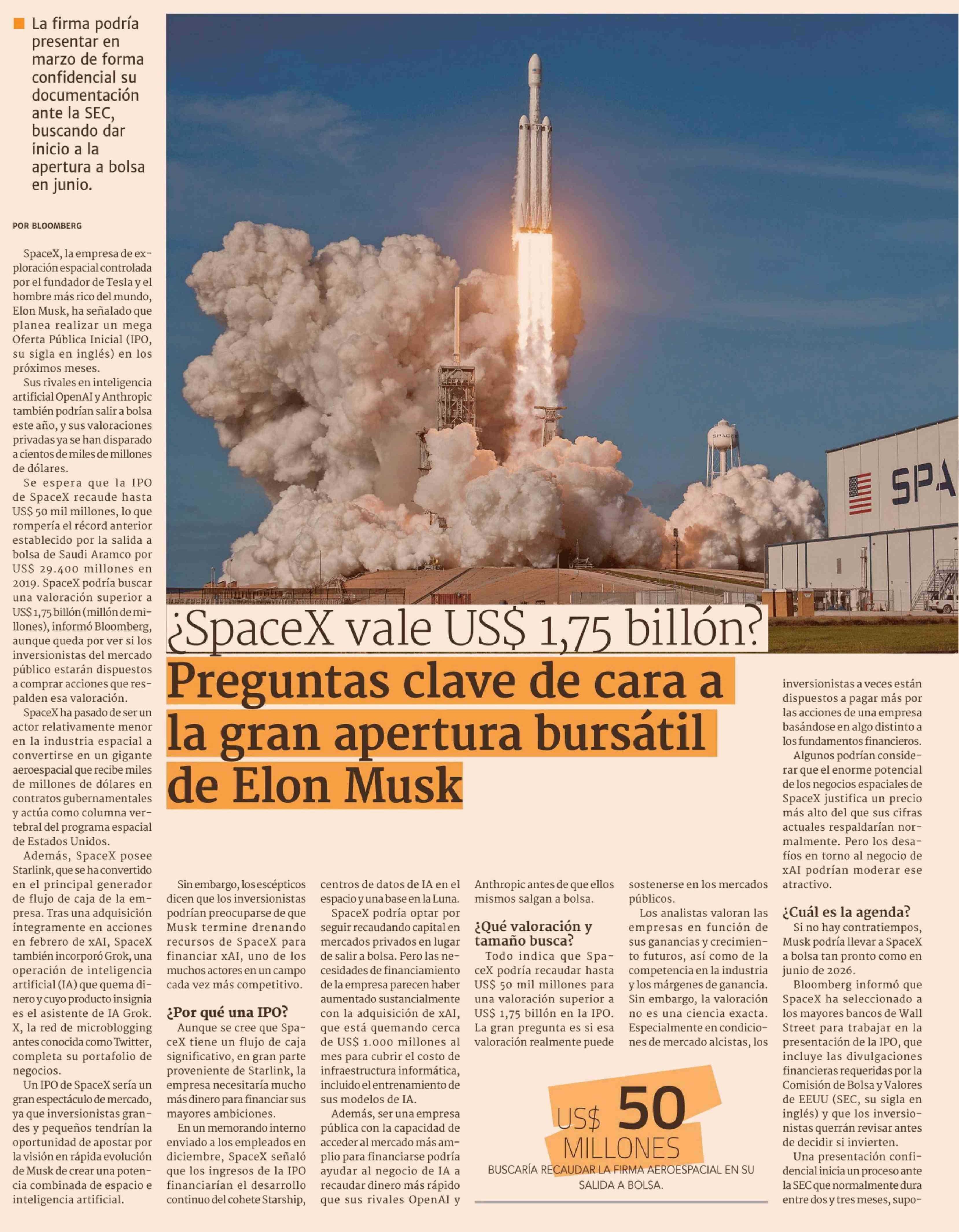 | Título: | ¿SpaceX vale US$ 1,75 billón? Preguntas clave de cara a la gran apertura bursátil de Elon Musk |