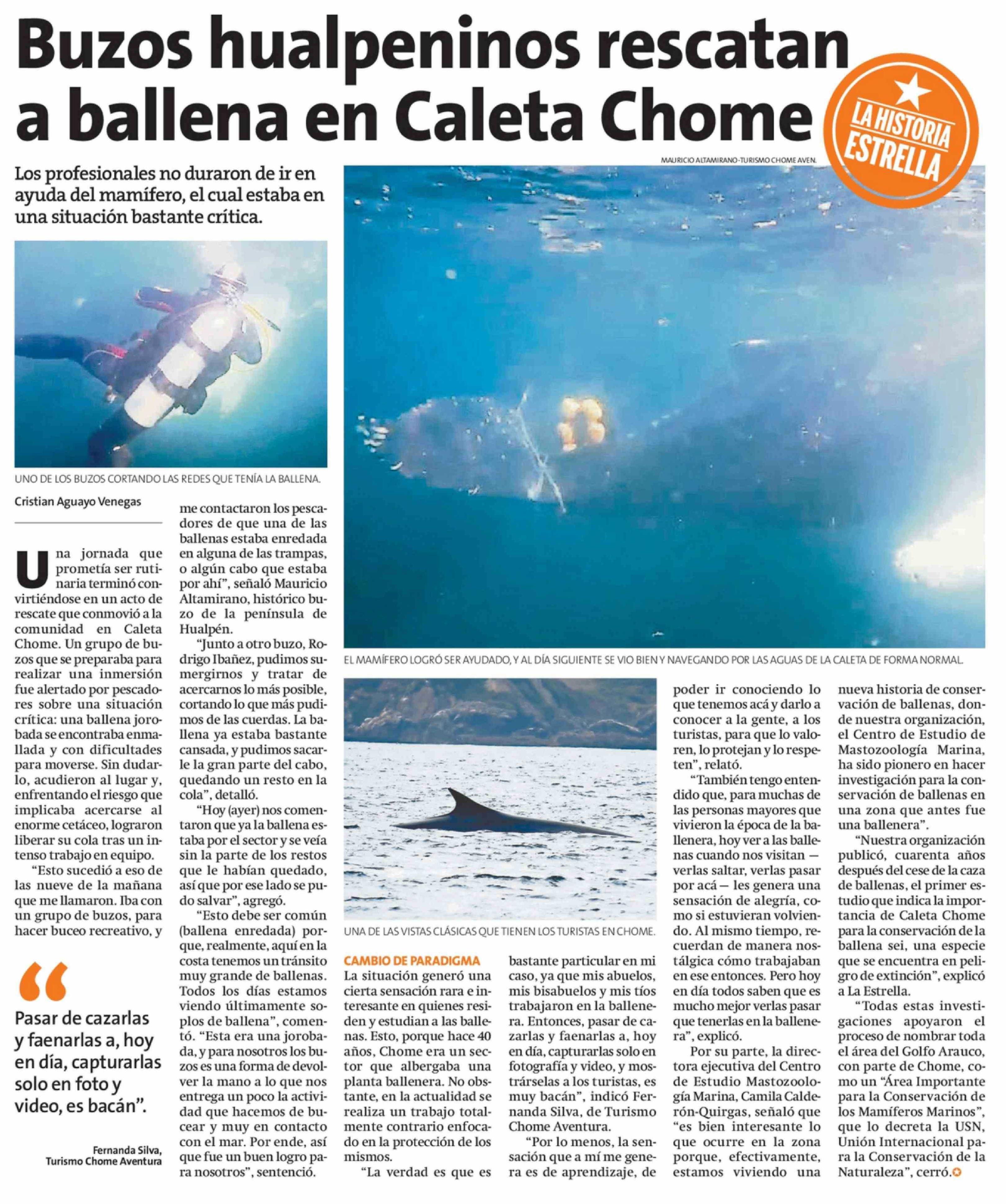 Buzos hualpeninos rescatan a ballena en Caleta Chome 23-04-2026 La Estrella de Concepción |