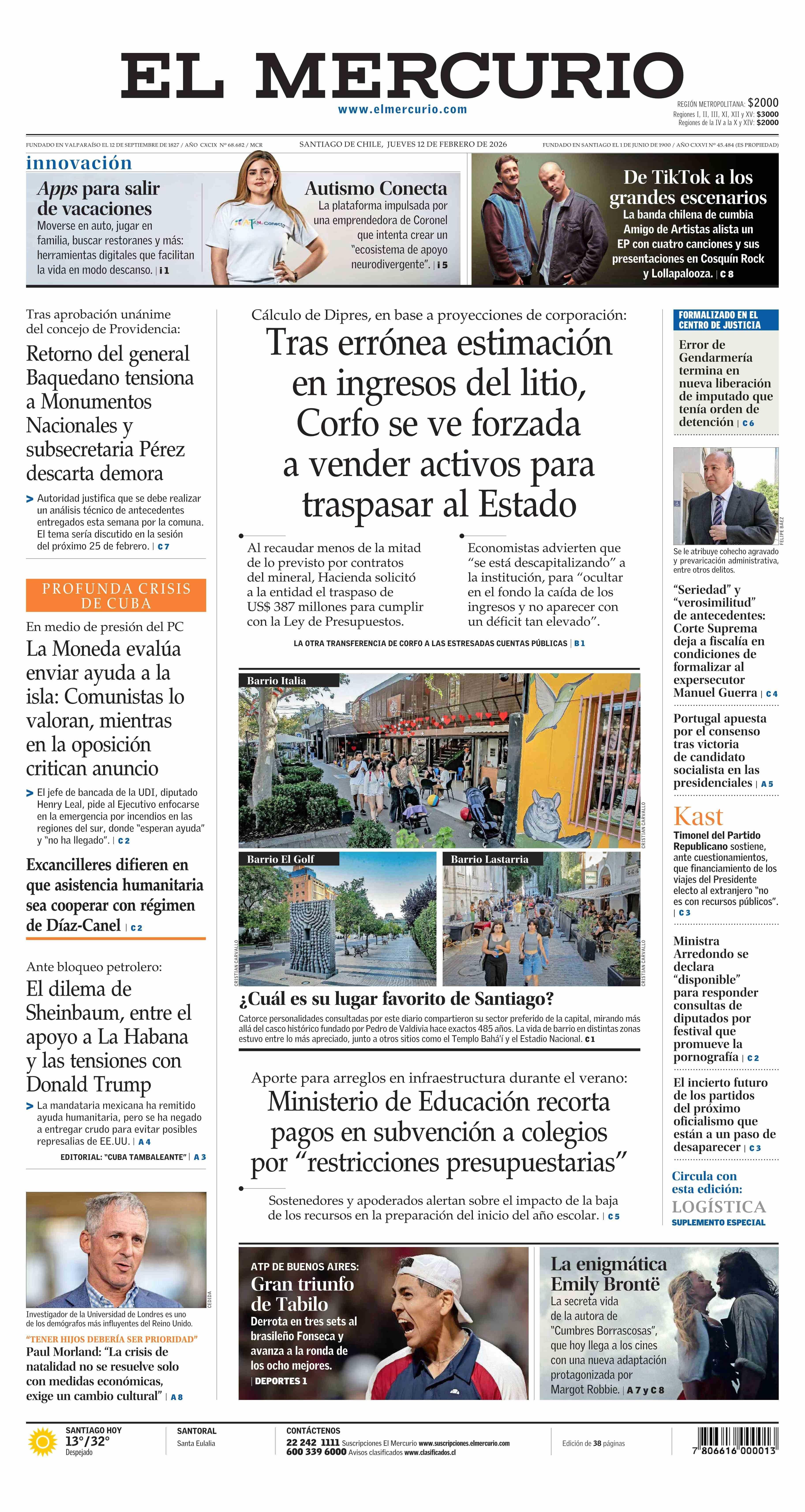 PORTADA EL MERCURIO (A) CHILE 12-02-2026 El Mercurio |
