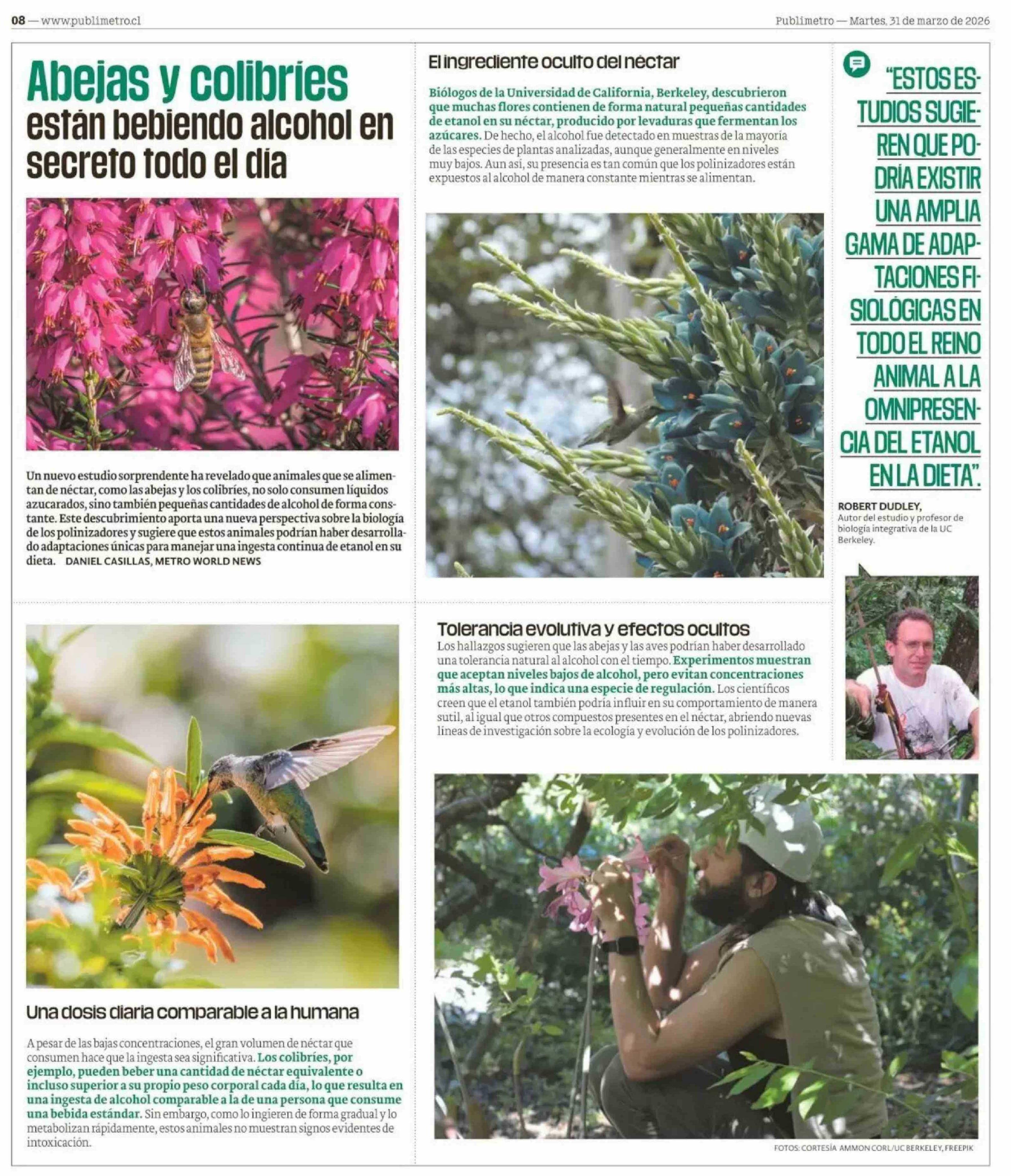 Abejas y colibries están bebiendo alcohol en secreto todo el dia 31-03-2026 Publimetro |