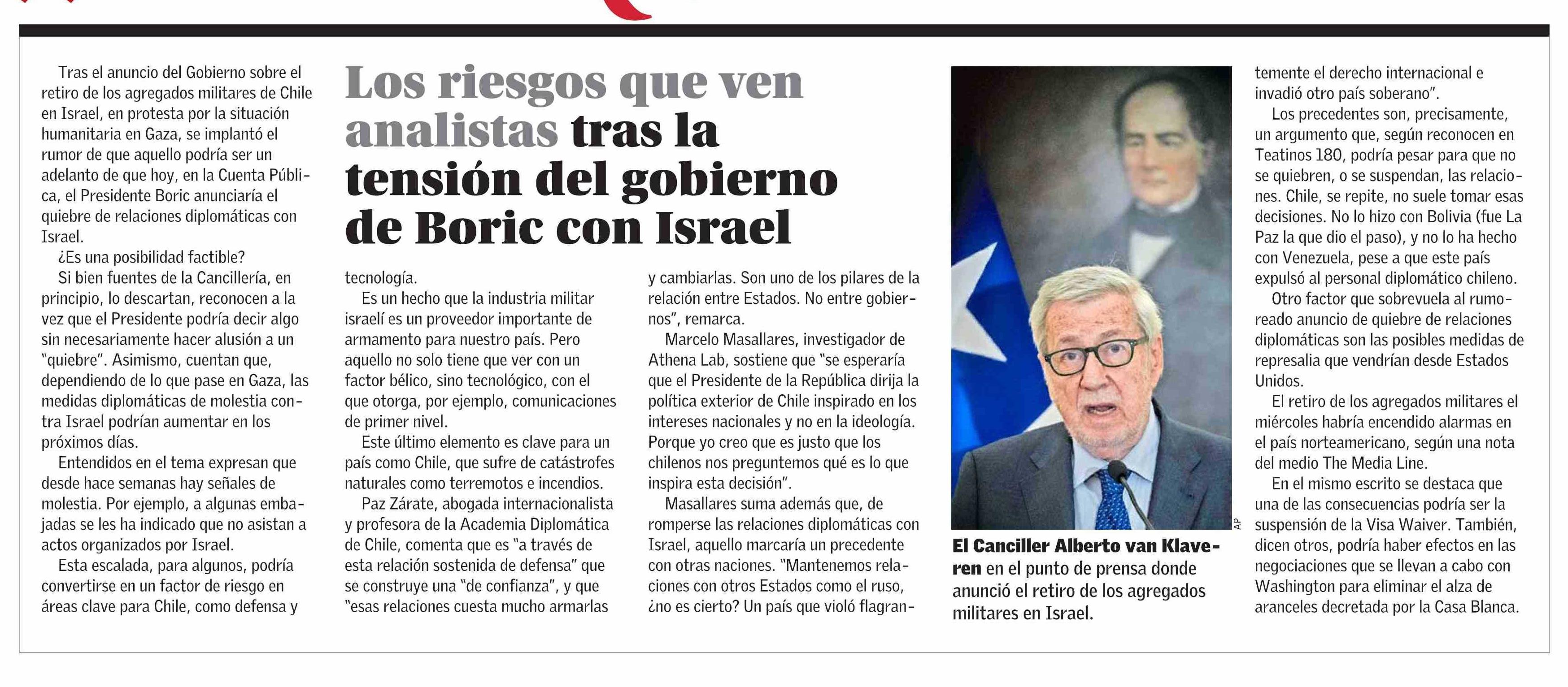 Los riesgos que ven analistas tras la tensión del gobierno de Boric con Israel 01-06-2025 El Mercurio |