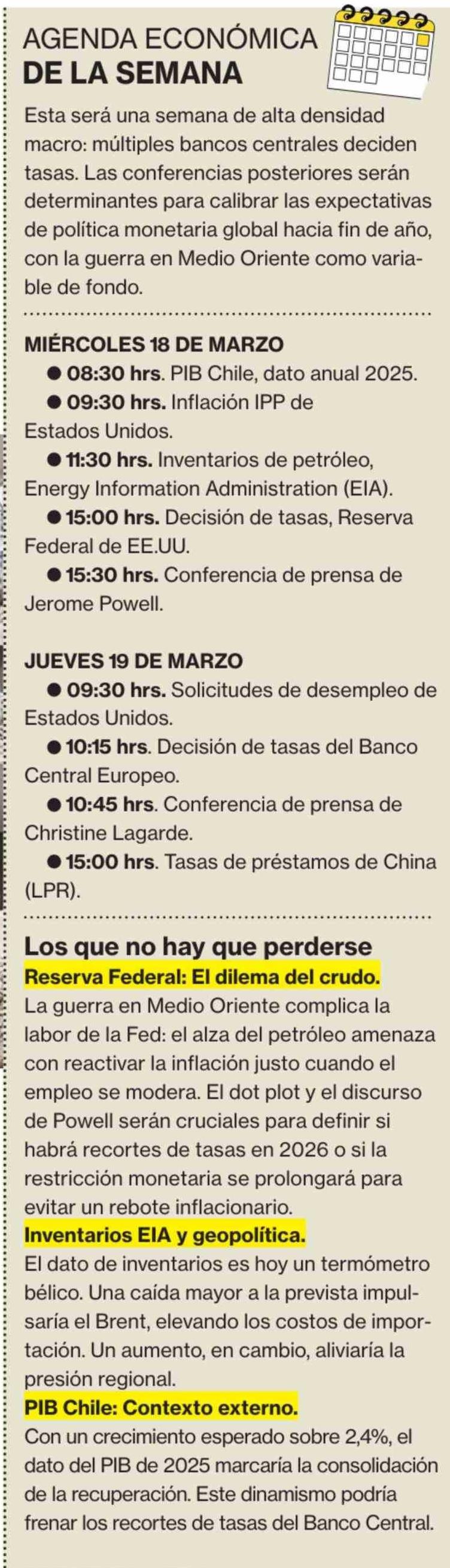 AGENDA ECONÓMICA DE LA SEMANA 16-03-2026 La Segunda |