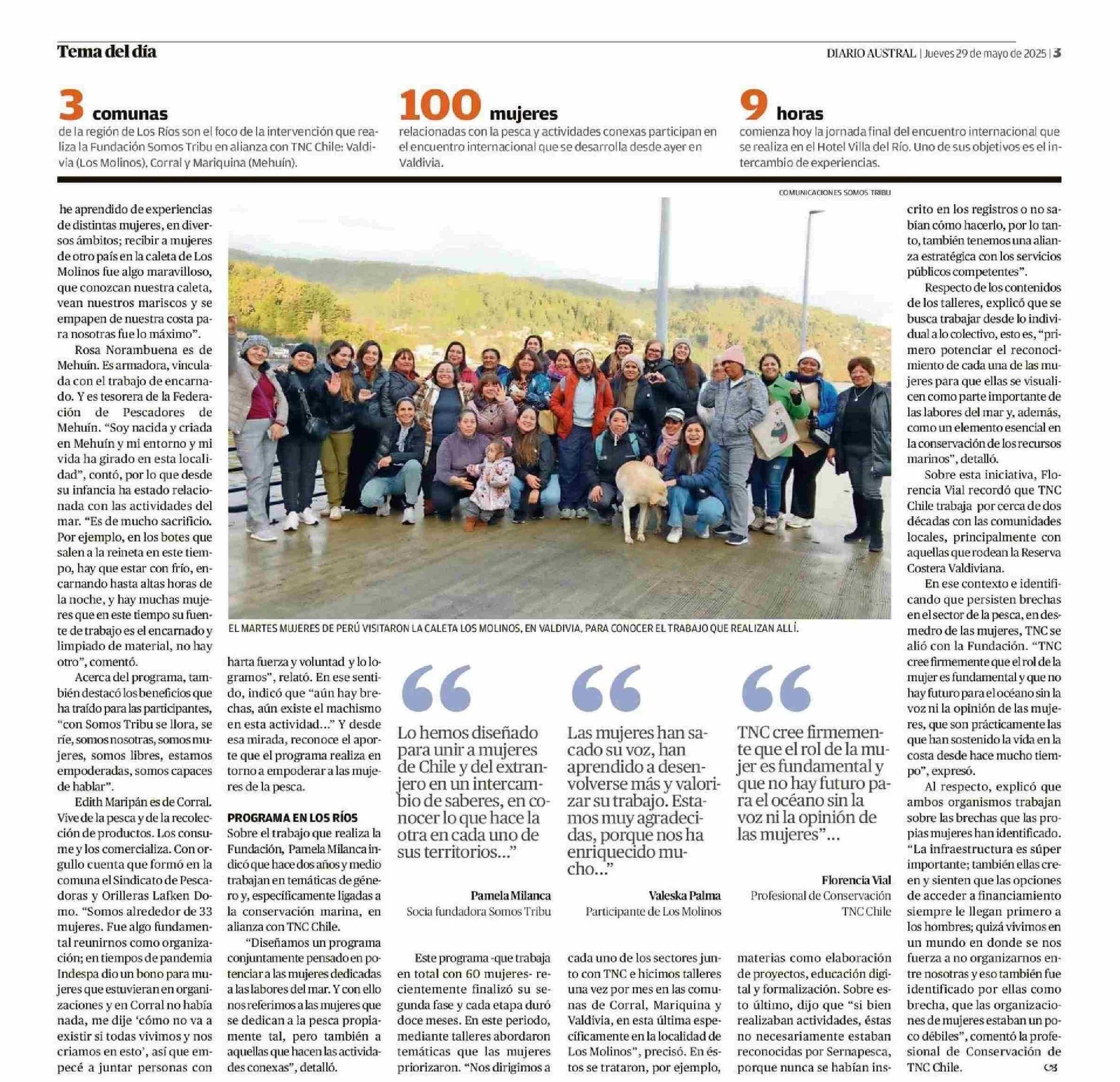 Mujeres de la pesca intercambian saberes en encuentro internacional 29-05-2025 Diario Austral Región de Los Ríos |