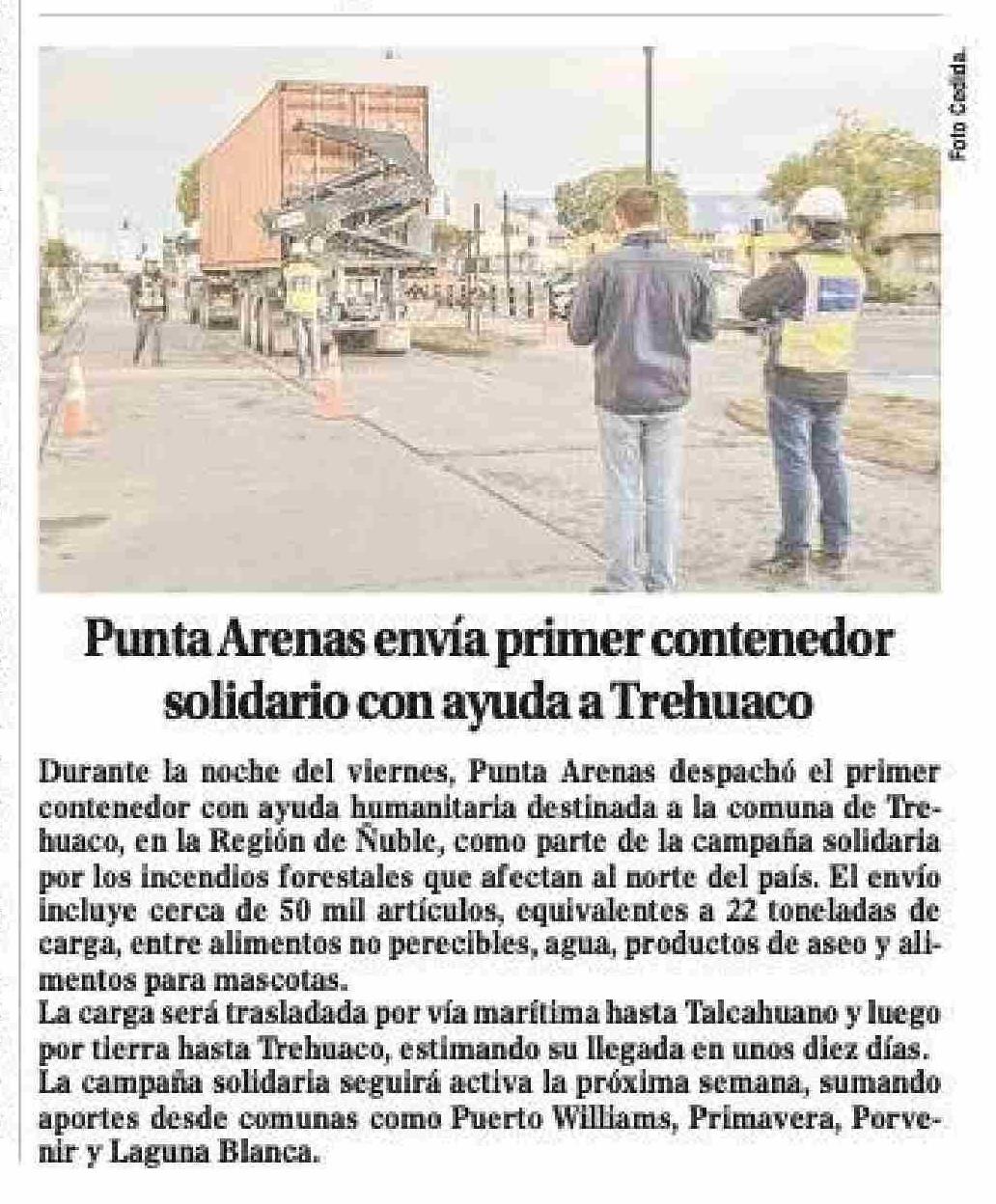 Título: Punta Arenas envía primer contenedor solidario con ayuda a Trehuaco