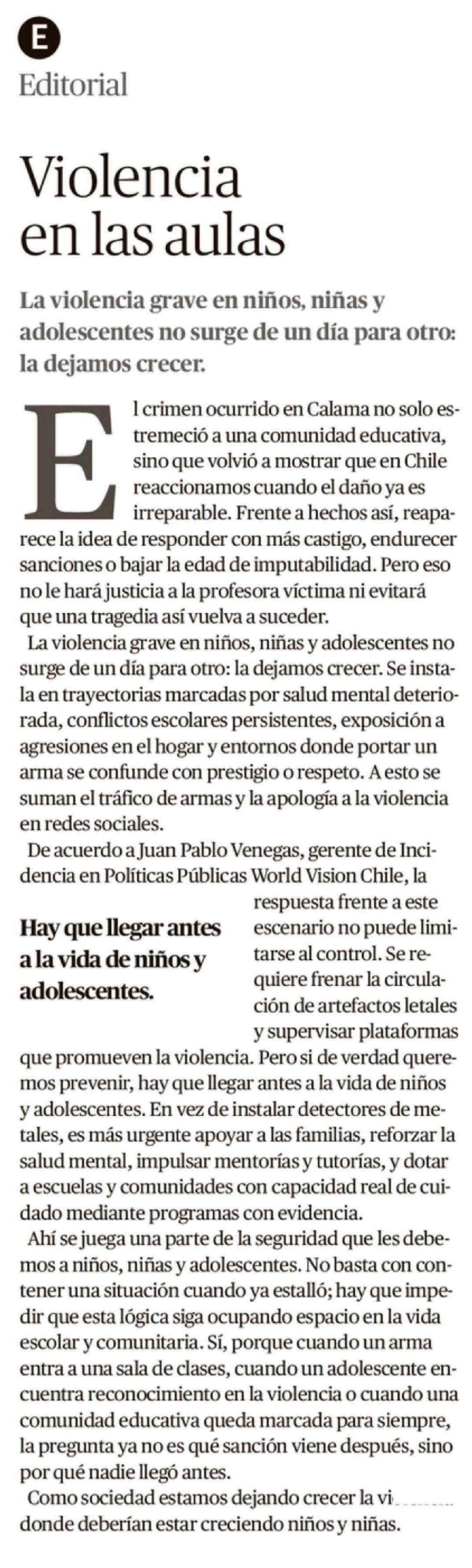 Editorial: Violencia en las aulas 20-04-2026 El Austral de la Araucanía |