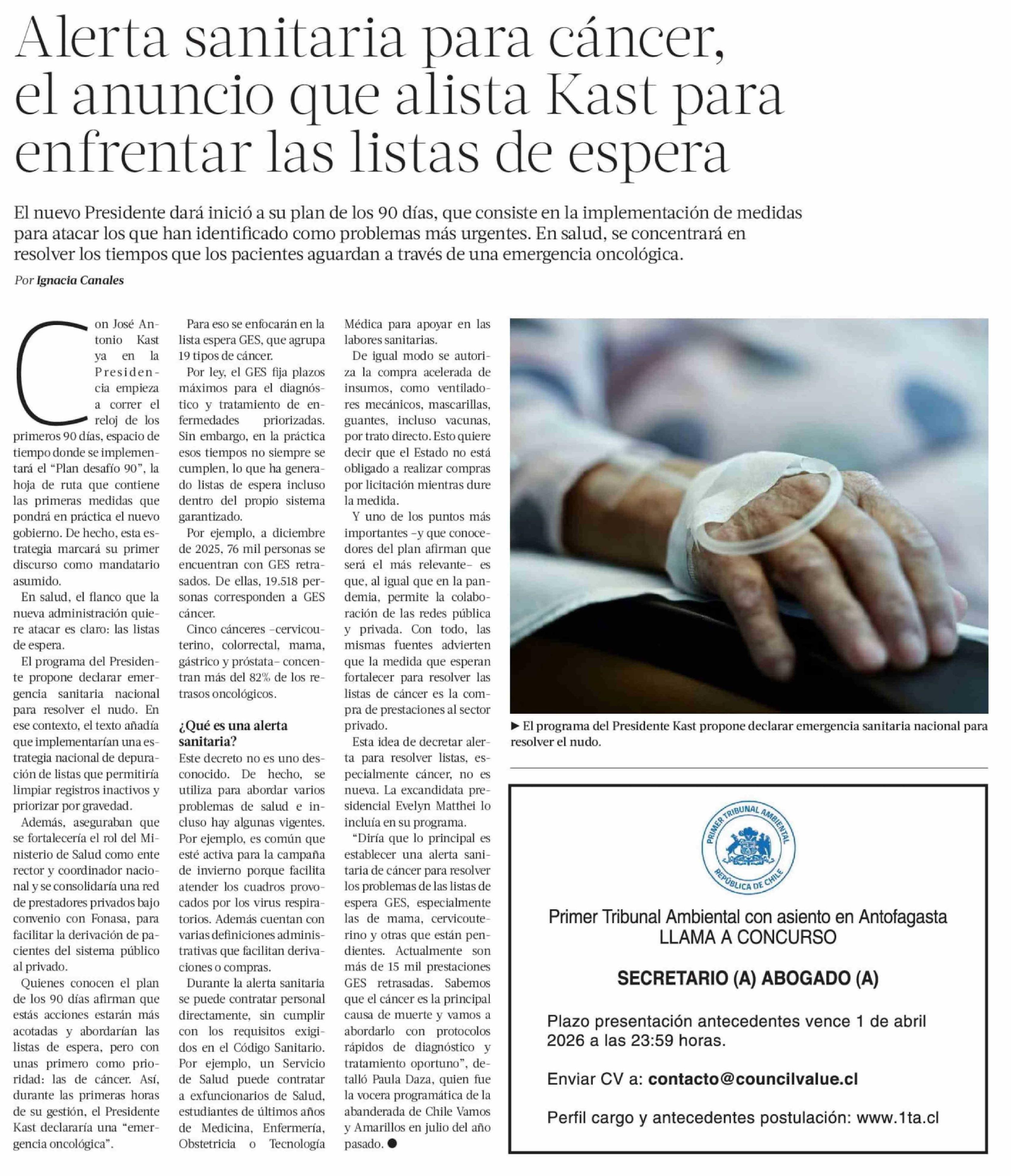 Título: Alerta sanitaria para cáncer, el anuncio que alista Kast para enfrentar las listas de espera